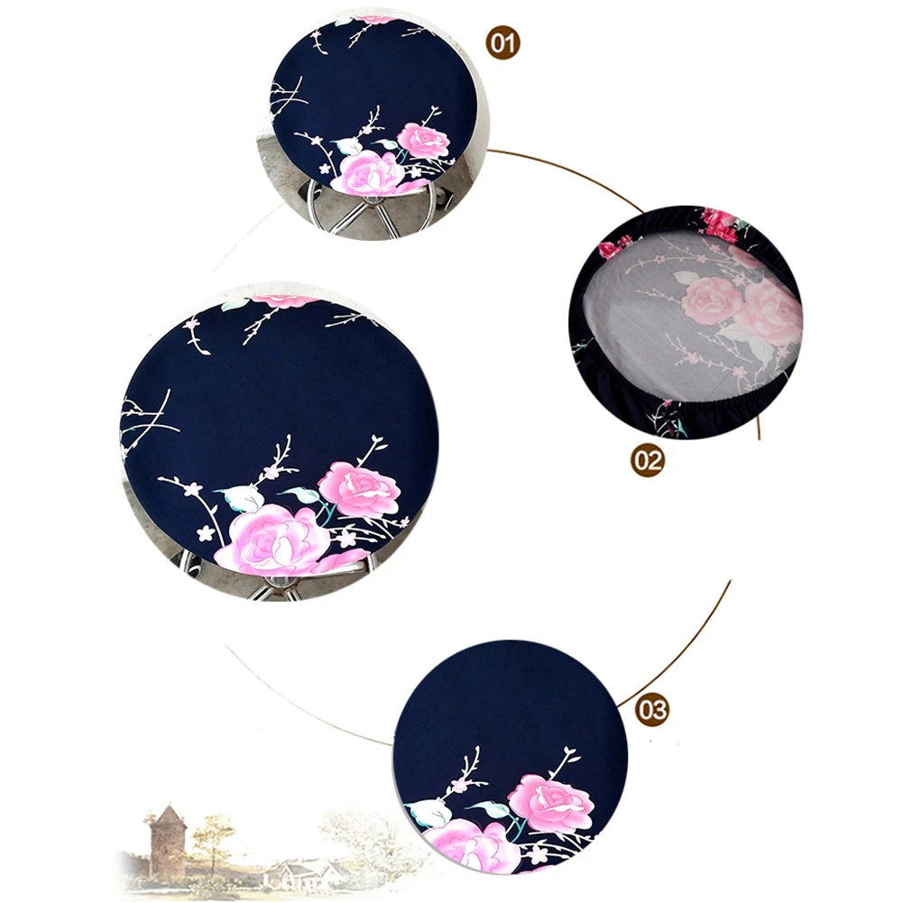 1 Pc Round Chair Cover New Year Bar Stool Cover Elastic Seat Cover Home Decor Chair Bar Stool Floral Printed Chair Slipcover ??