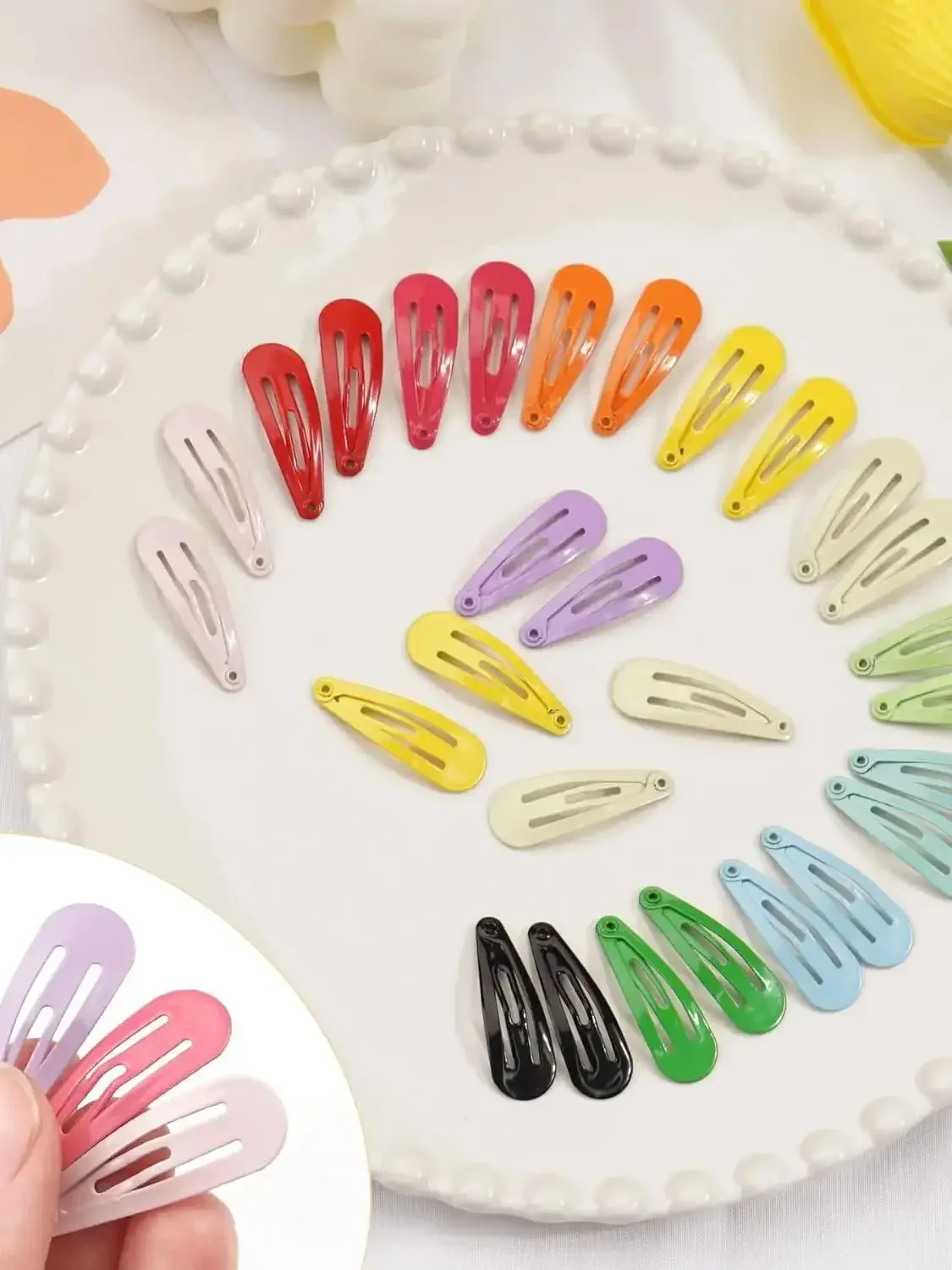 Metal hair clips,covered with smooth material on the surface, not plastic surface,very durable and safe.They can hold on well and will not come off.