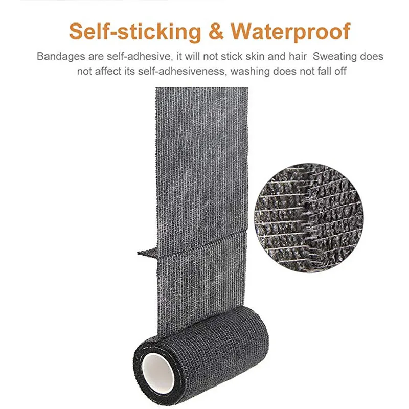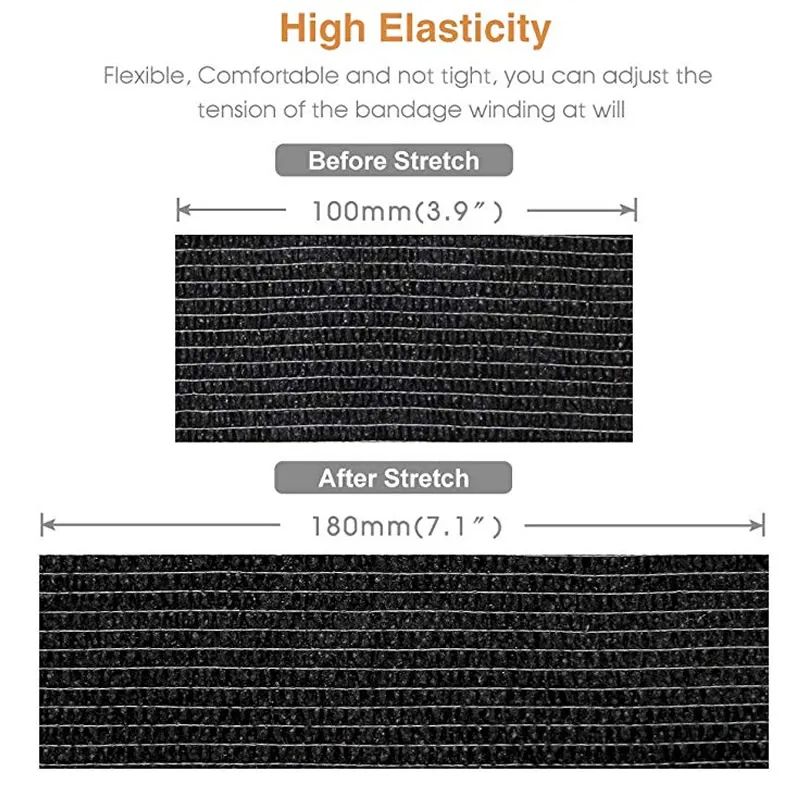 High Elasticity & Self Adhesive - Self adhesive bandage wrap ratio of over 180%, providing adjustable tightening force and excellent support. The bandages sticks to itself not the hair and skin. It is great for applications where adhesive is not wanted. It's great for Great for emergency aid kits and field activities.