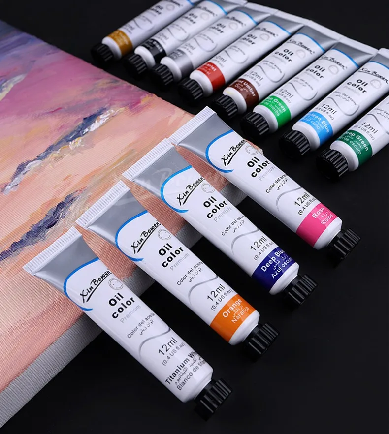12 Color 12ml/9ml Oil Paints Set Paste Delicate Coverage Strong Art Supplies Beginner Watercolor Painting Graffiti Pigment