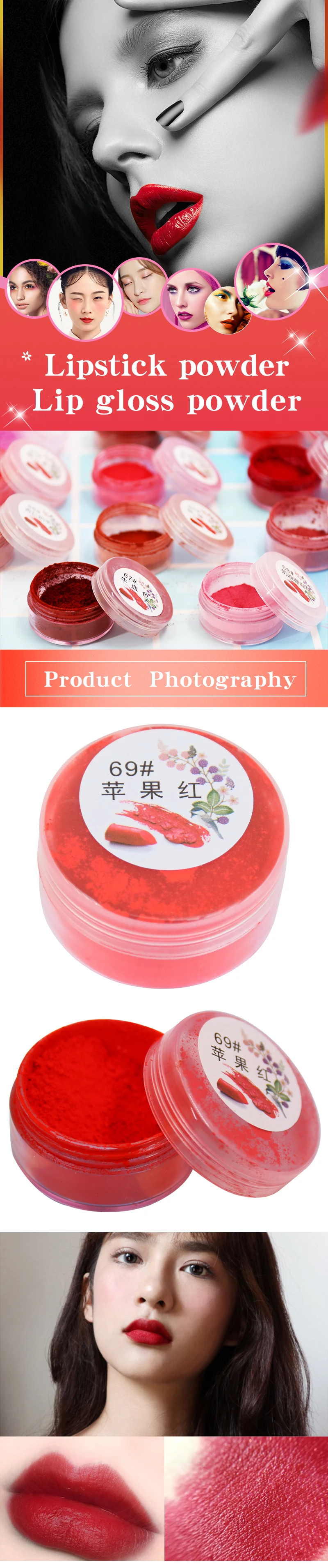 1g Per Bottle Russian Red Color Long Lasting Lip Gloss Pigment Mica Powder Lipstick Powder for Comestic Makeup