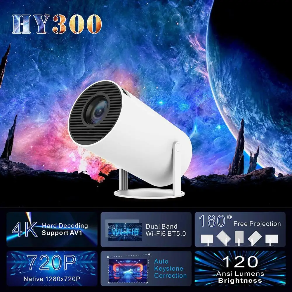 2/1PCS HY300 mini projector 4K Android 11 Projector WiFi6 1GB+8GB ROM BT5.0 Portable projector1280*720P home theater projector