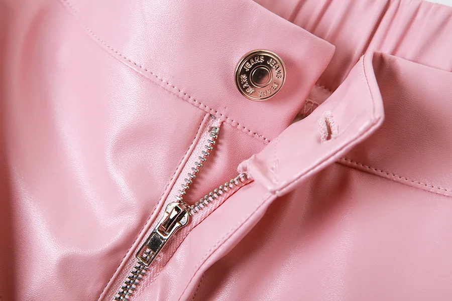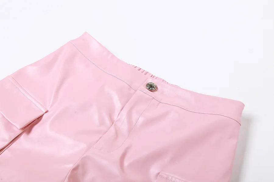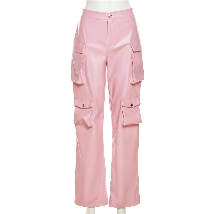 2023 New Fashion Women's Pants Elegant Straight Leg Pocket Design Pu Leather Pants Female Trouser Casual Bottom Female Clothing