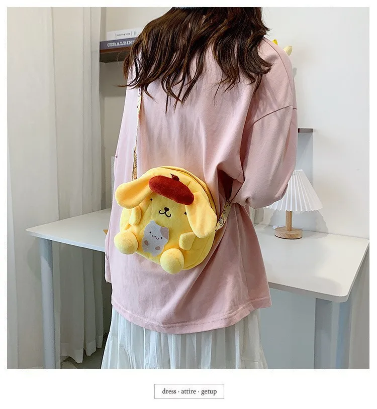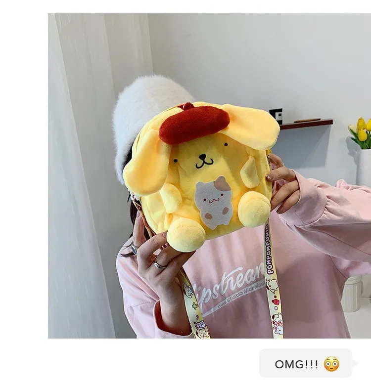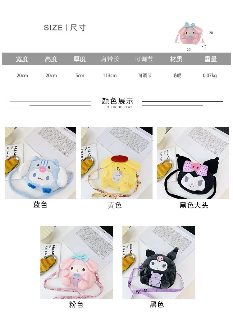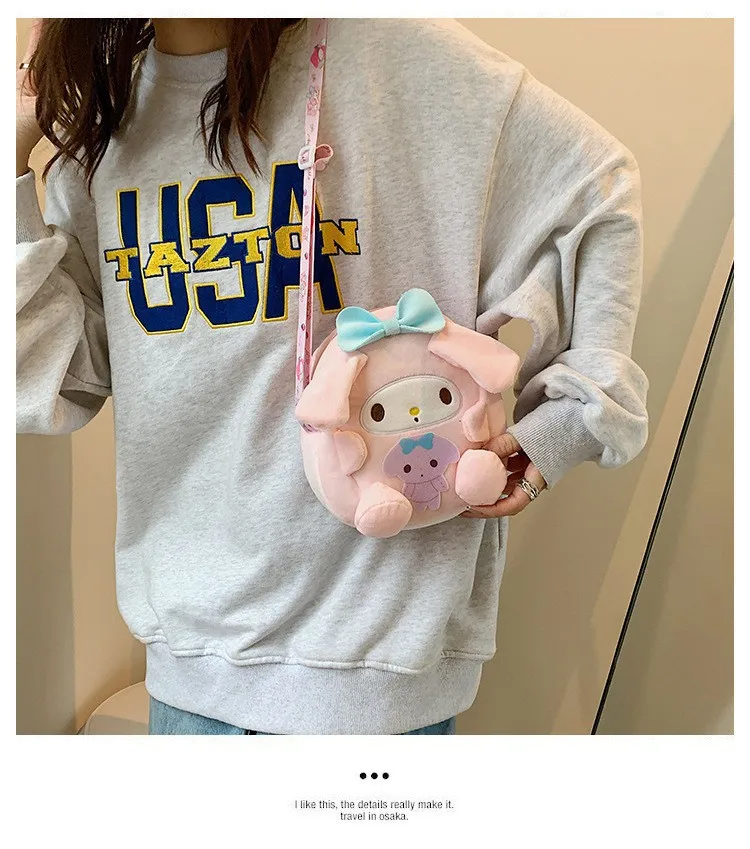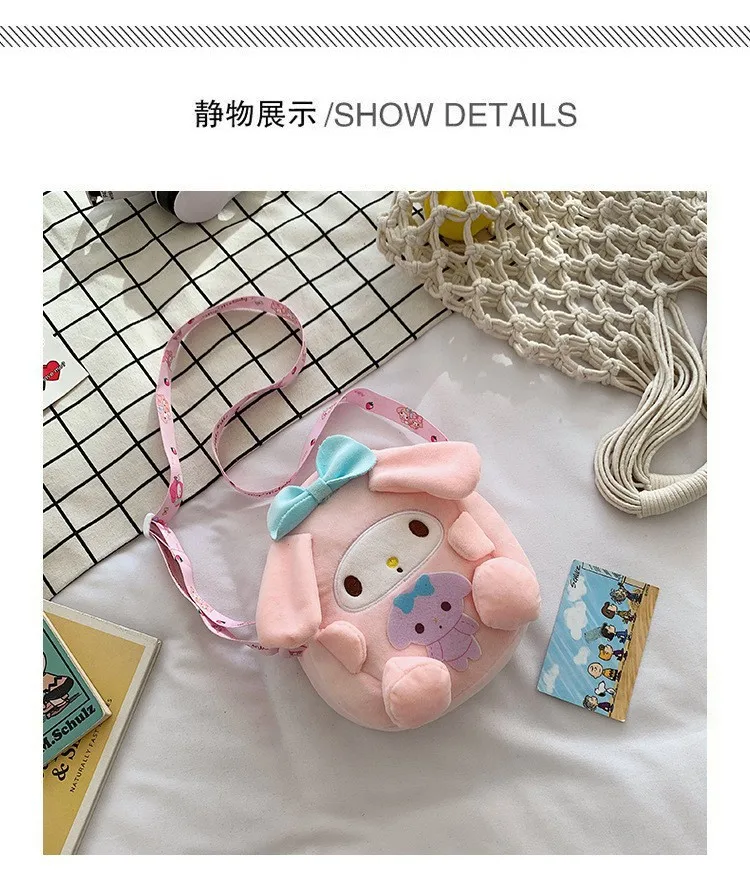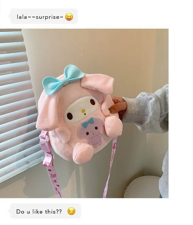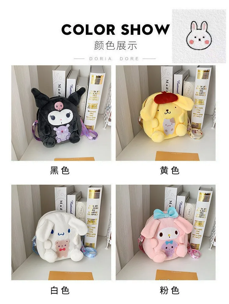 2023 New Sanrio Plush Backpack Cute My Melody Shoulder Bags Kawaii Cinnamoroll Handbag 18cm Kulomi Mini Bag Gifts for Kids Girls