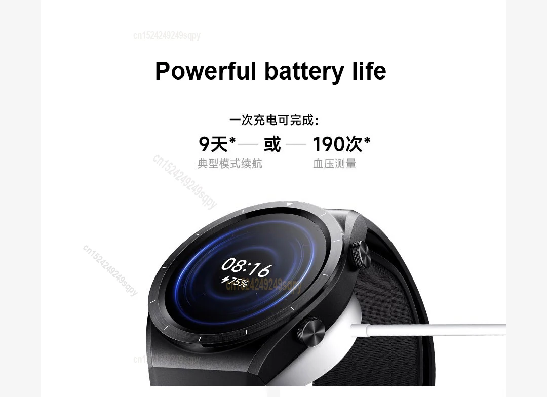 Sensors: Acceleration Sensor|Gyroscope|Optical Heart Rate and Blood Oxygen Sensor|Electrocardiogram Acquisition Sensor|Differential Pressure Sensor|Temperature Sensor|Geomagnetic Sensor|Hall Sensor|Ambient Light Sensor