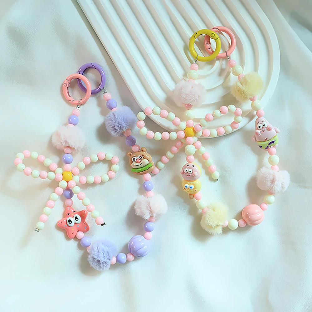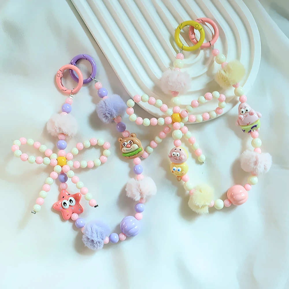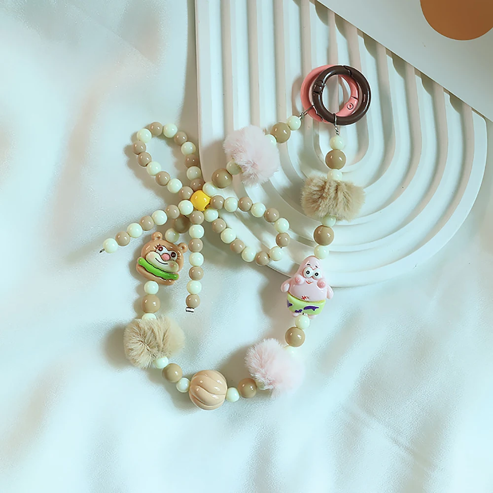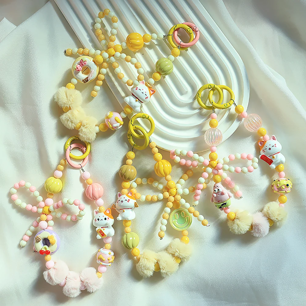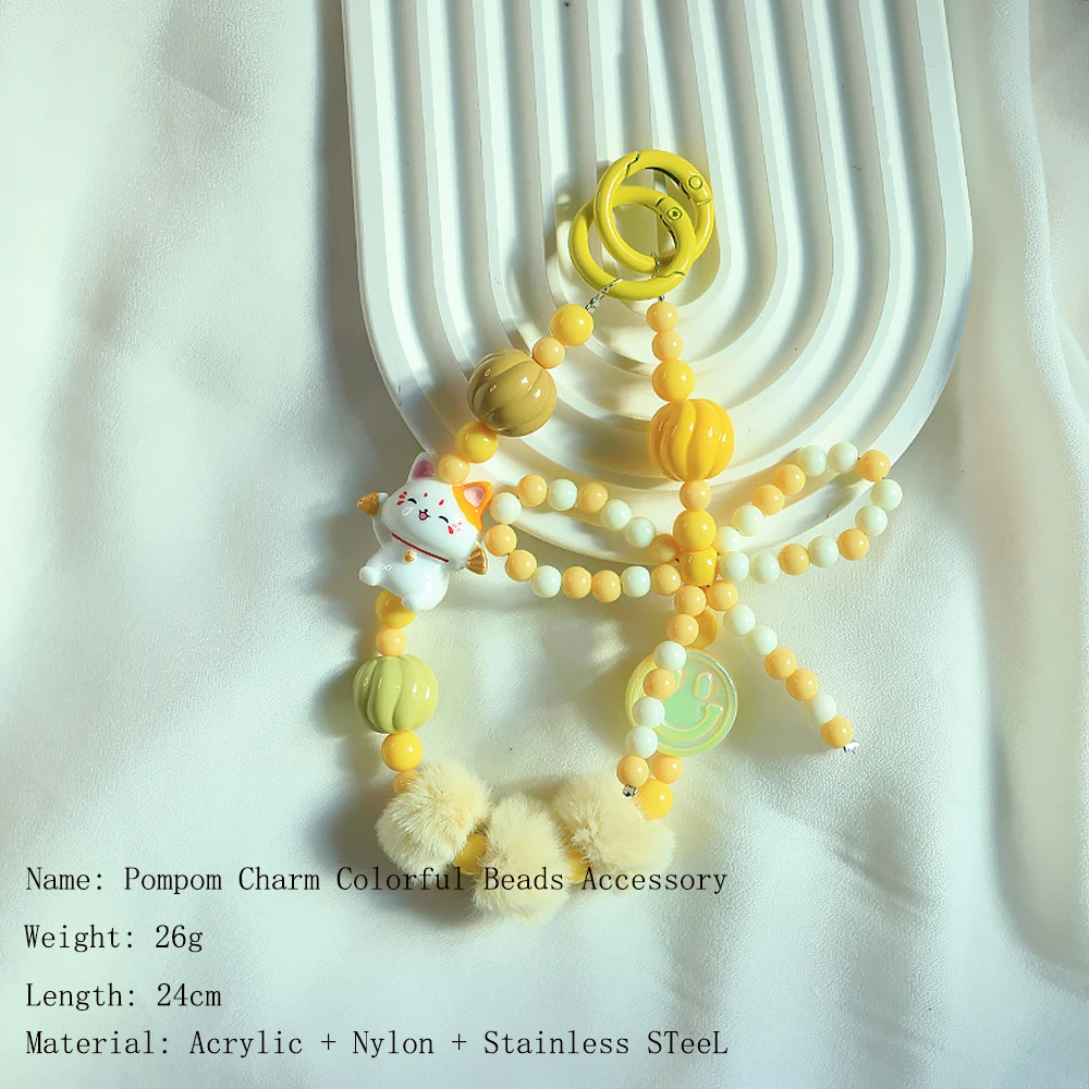 2024 Spring New Green Theme Bag Accessory Colroful Beaded Phone Strap For Women Beaded Bow Pompom Charm Keychain Accessory