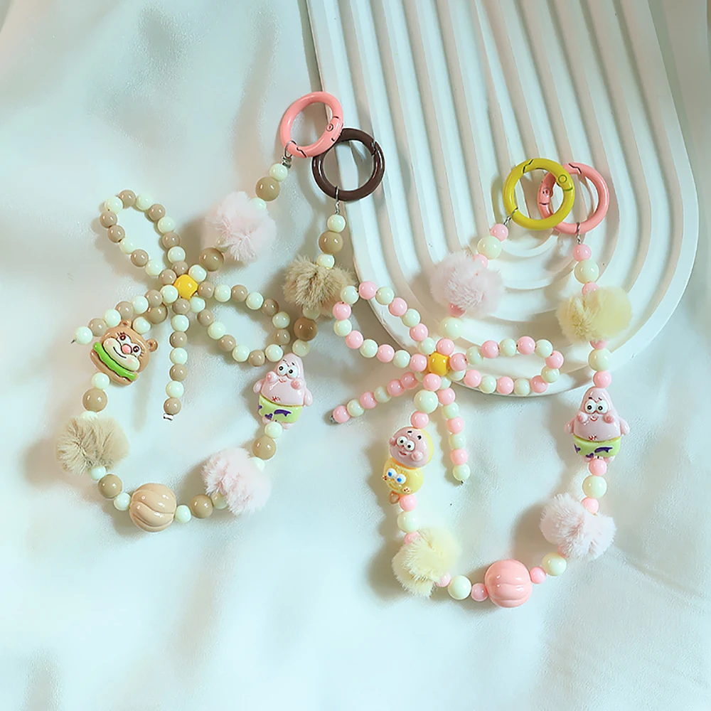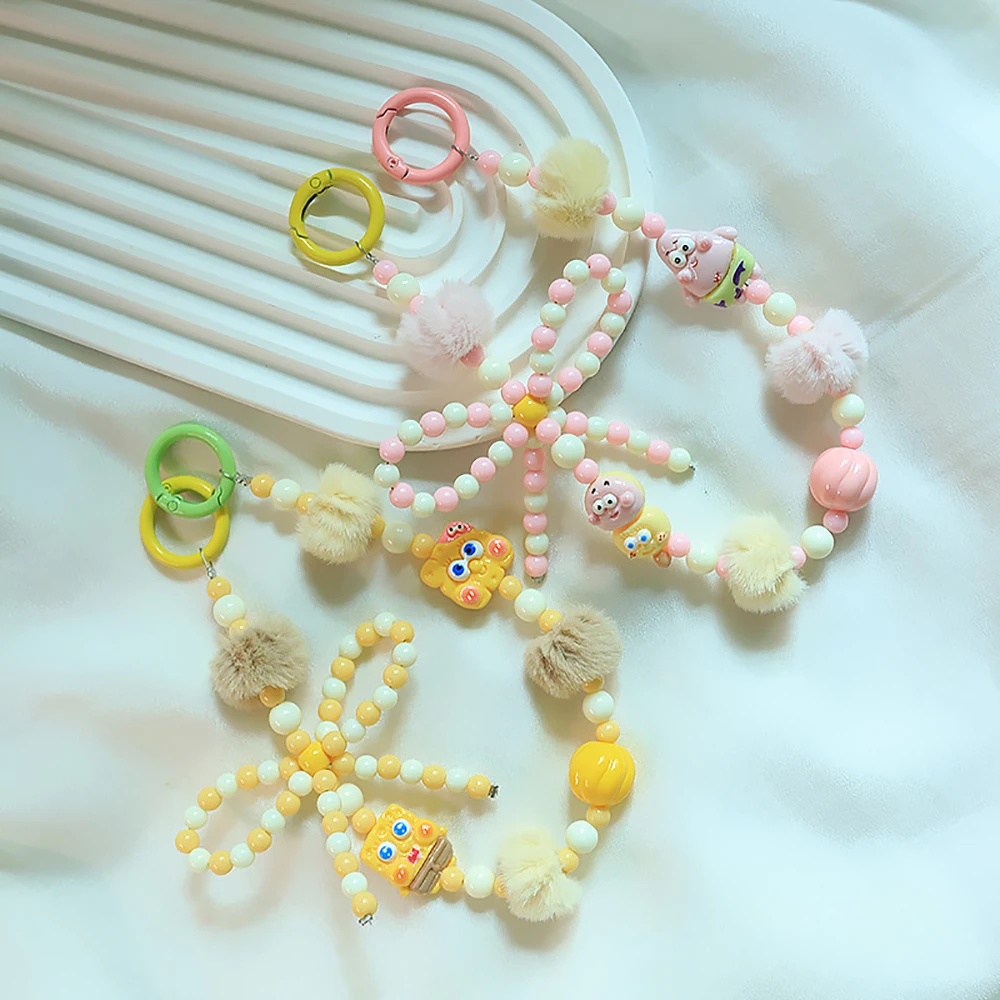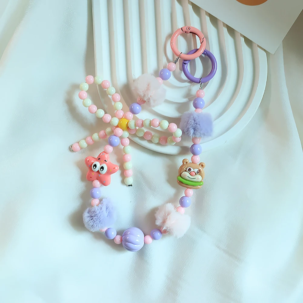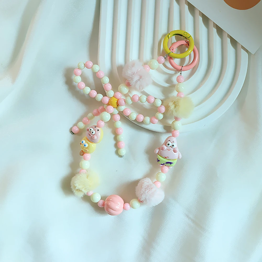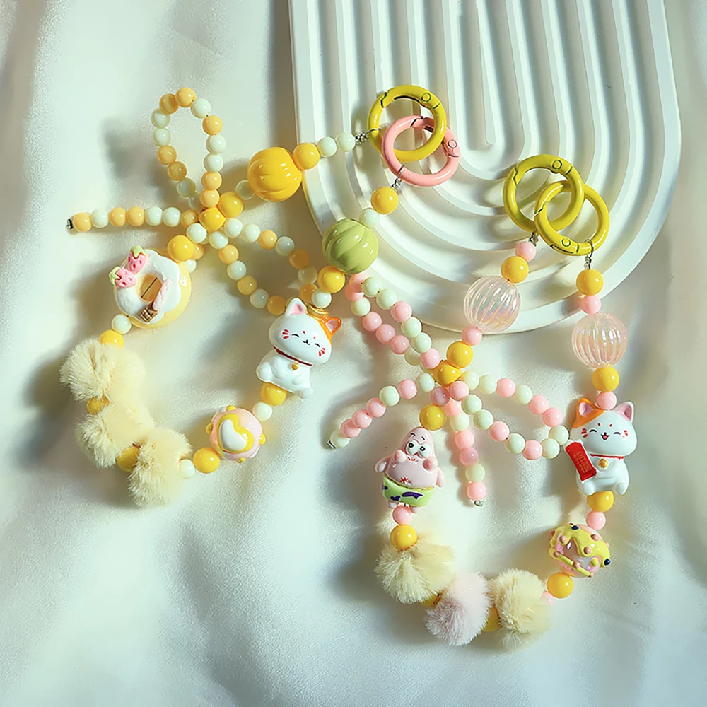 2024 Spring New Green Theme Bag Accessory Colroful Beaded Phone Strap For Women Beaded Bow Pompom Charm Keychain Accessory