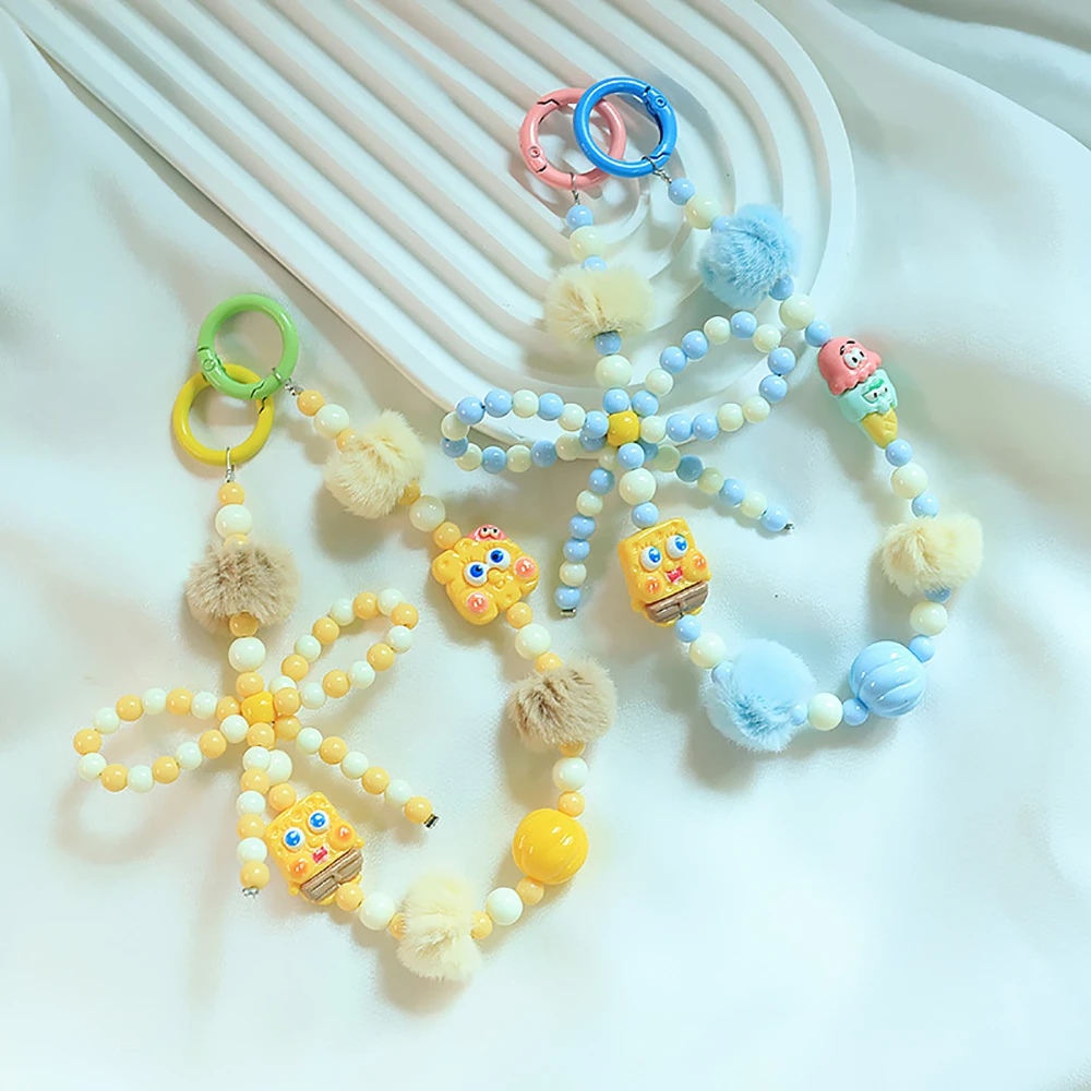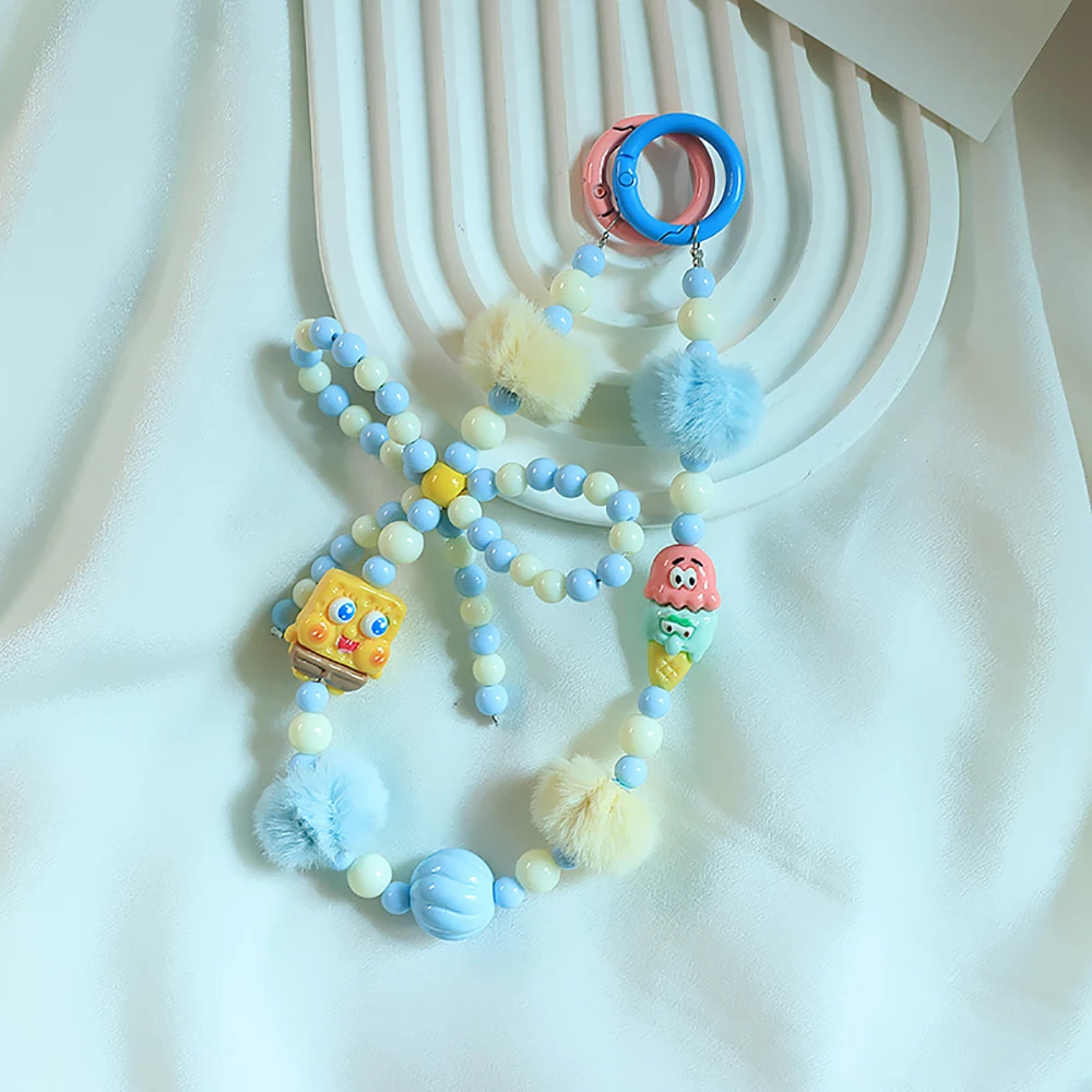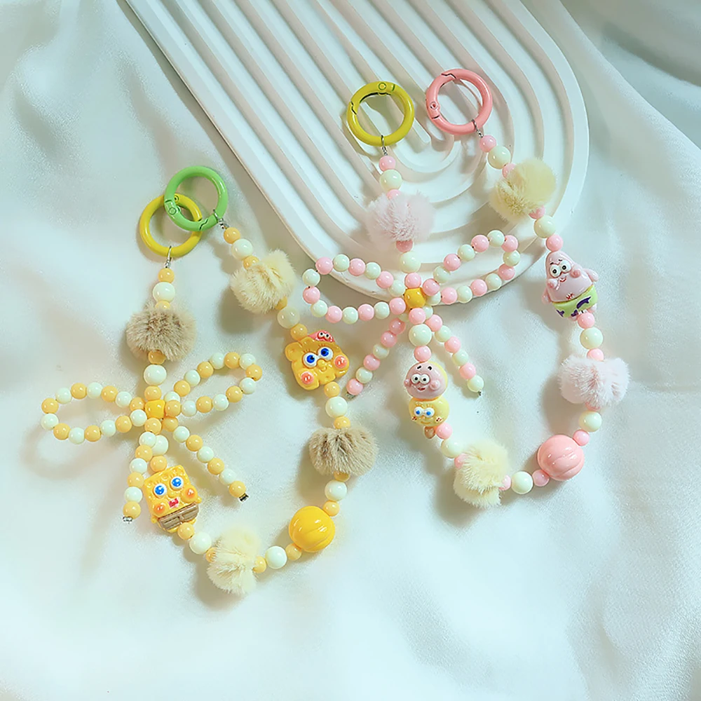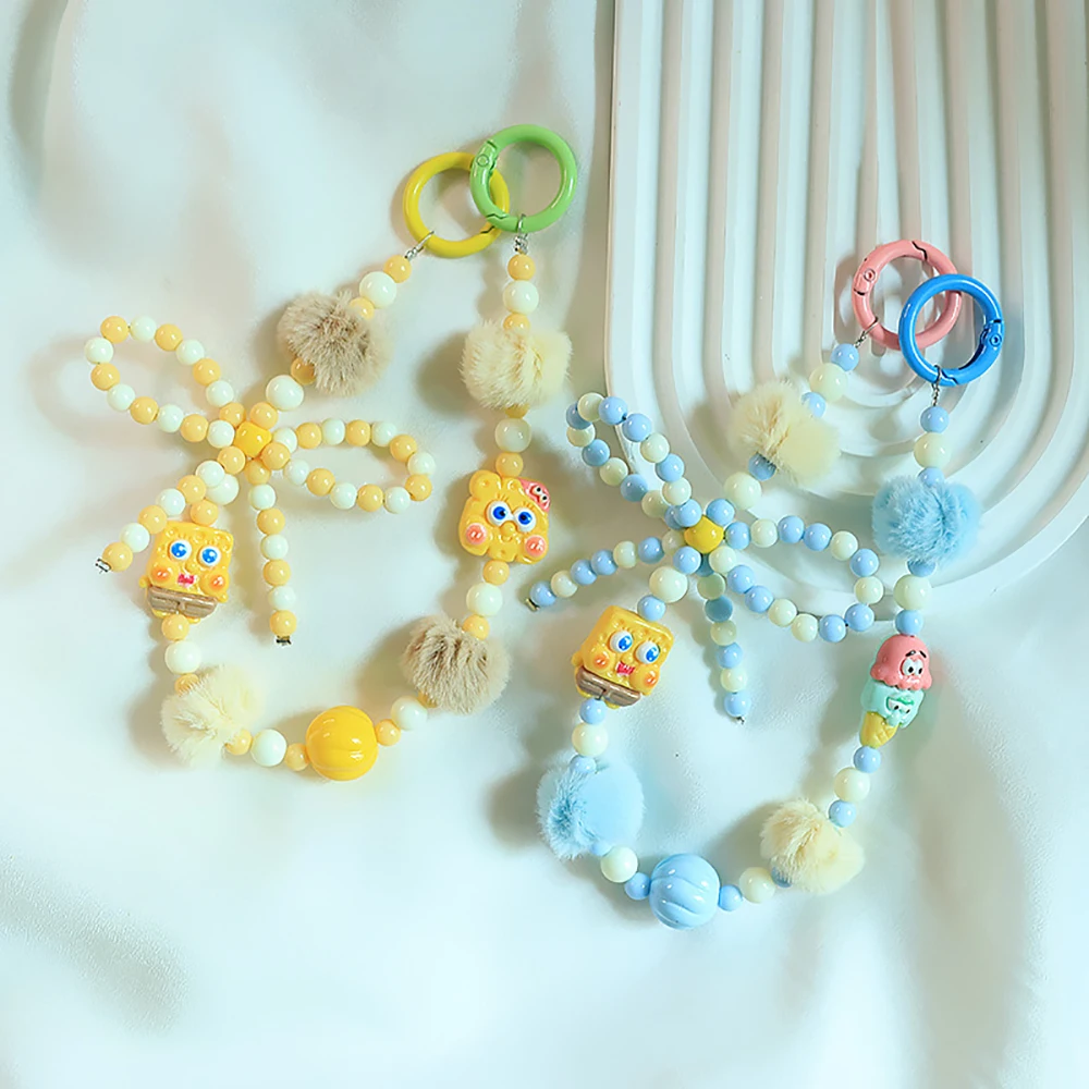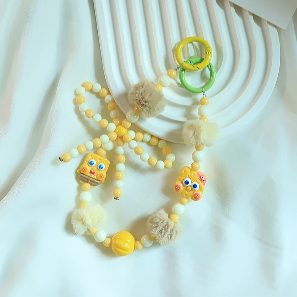 2024 Spring New Green Theme Bag Accessory Colroful Beaded Phone Strap For Women Beaded Bow Pompom Charm Keychain Accessory