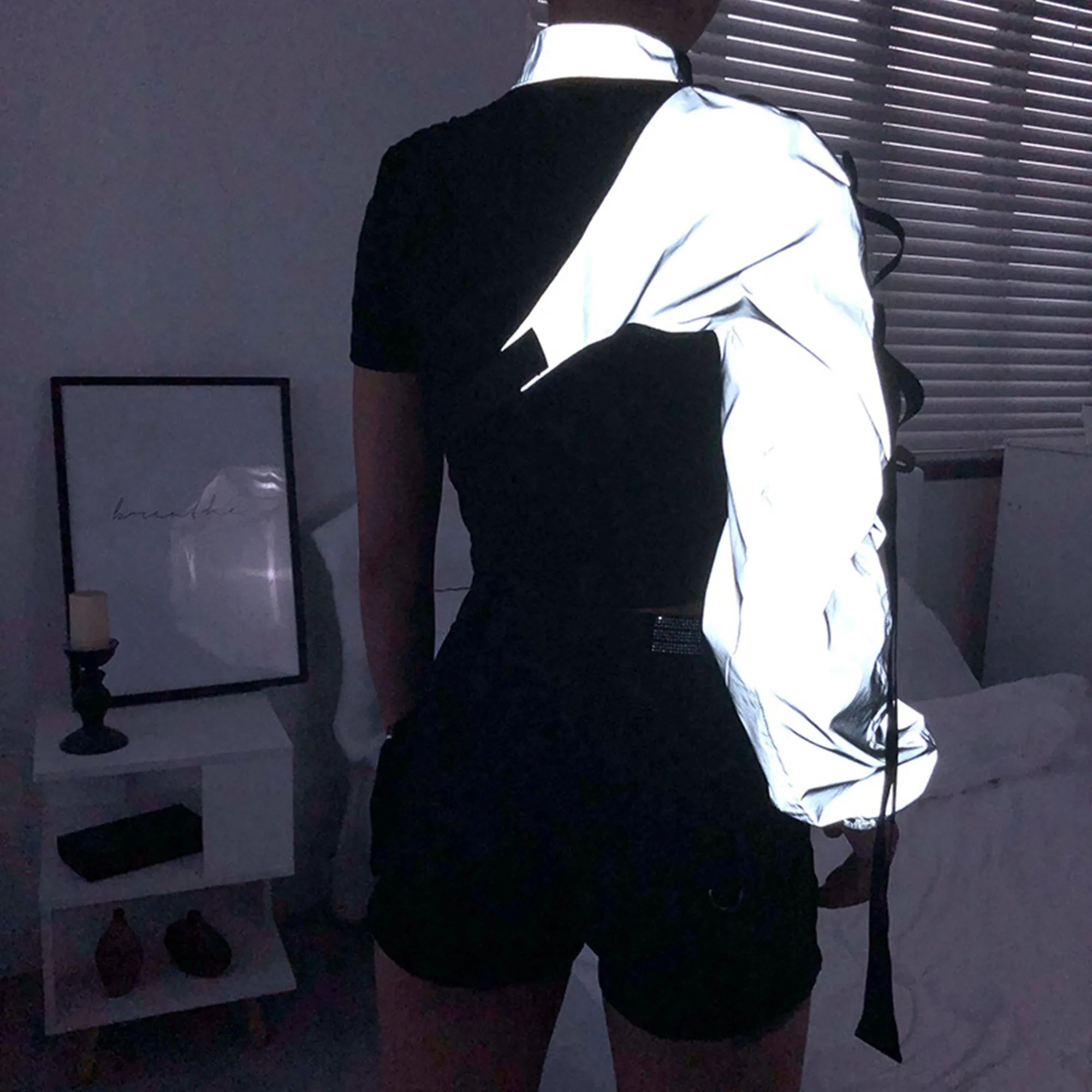 2024 Women's Holographic Reflective One-Shoulder Crop Jacket Top Outwear Halter Sweatshirt Top