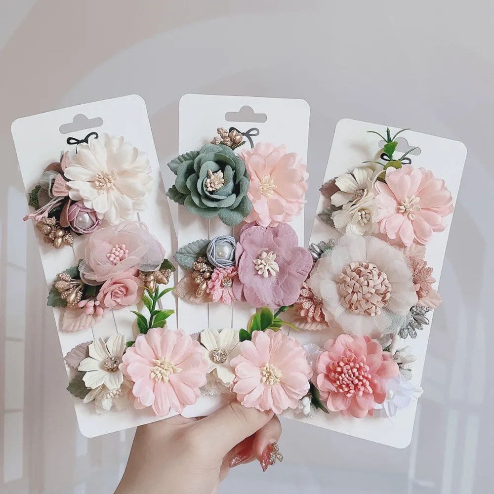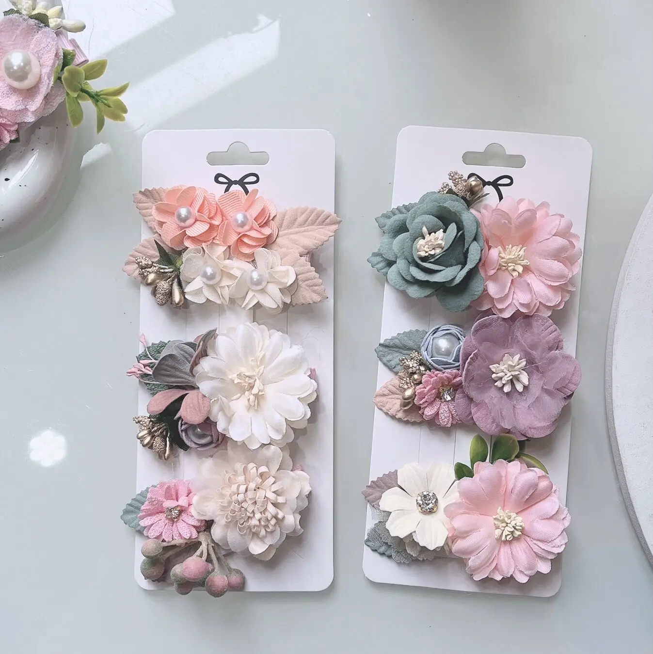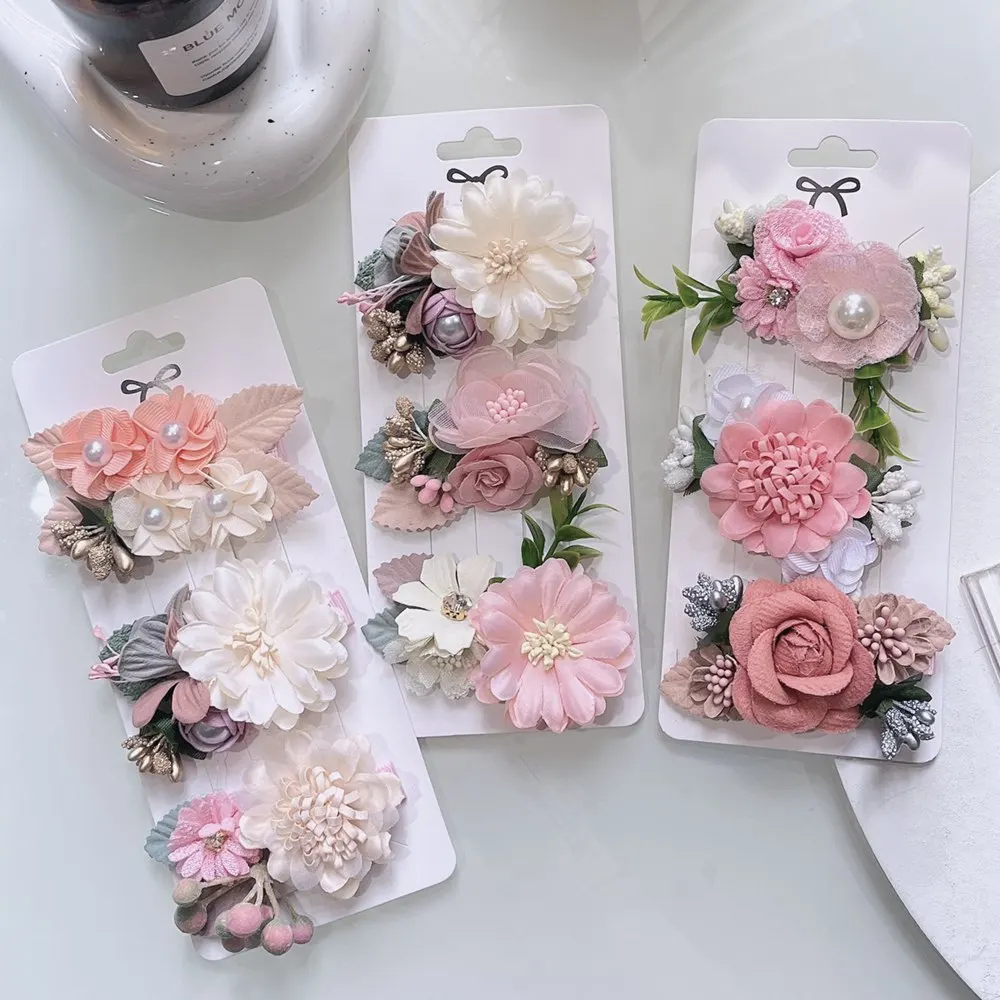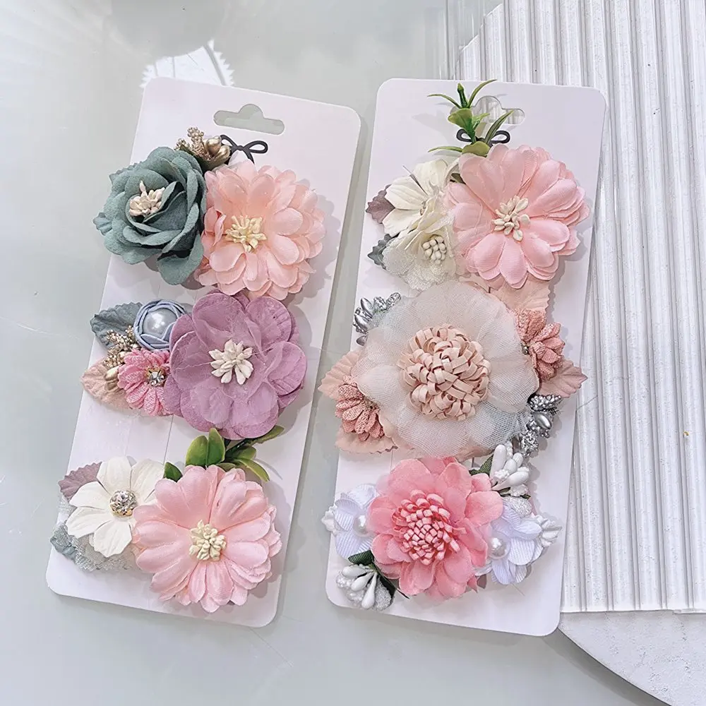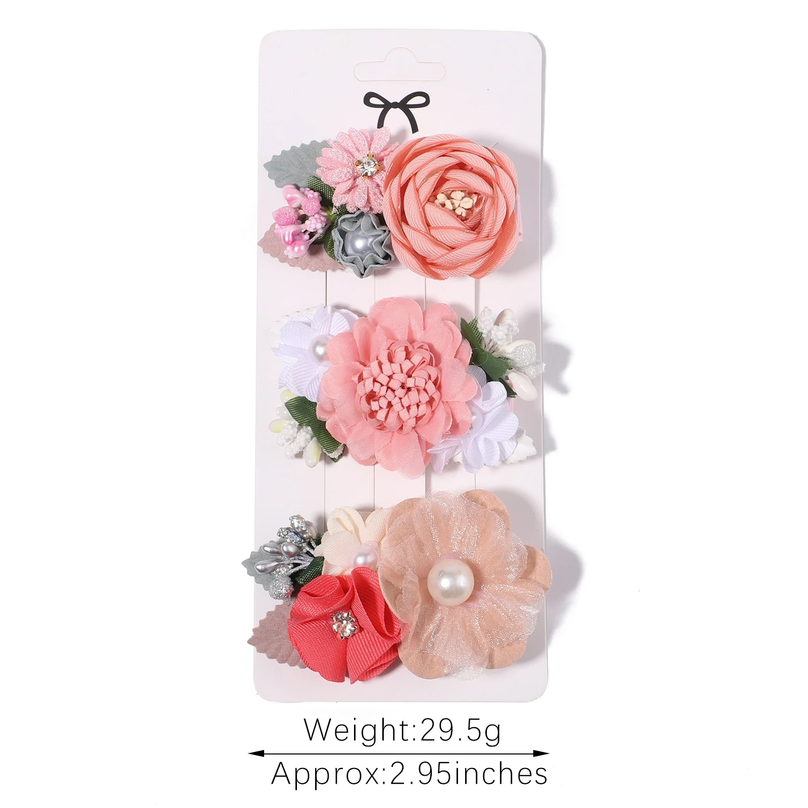 3PCS/Set Flower Petals Hair Clip For Sweet Girls Pearl Chiffon Hair Decorate Headwear Hairpin Barrettes Kids Hair Accessories