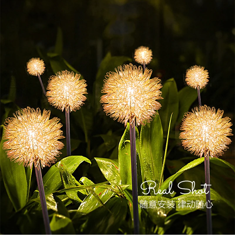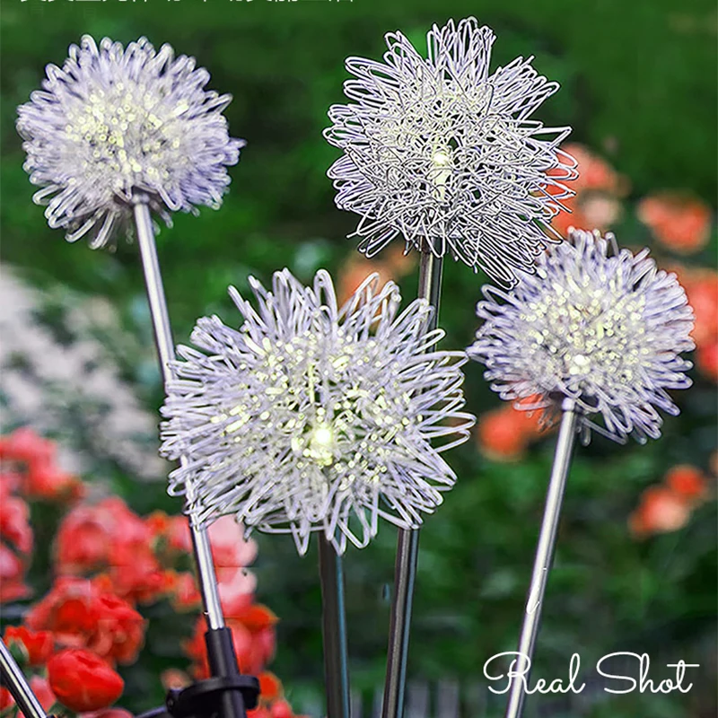 4/2pcs LED Solar Light Dandelion Flower Ball Outdoor Waterproof Garden Street Lawn Stakes Fairy Lamps String Yard Art Decoration
