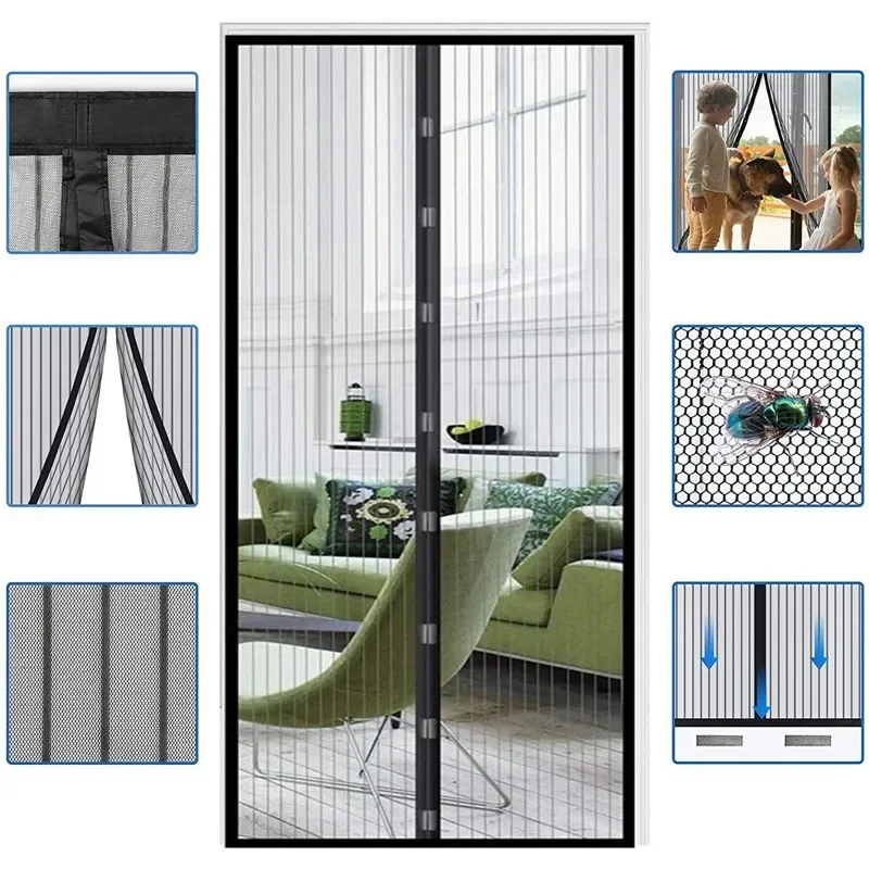 80/90/100/110/120/140cm Magnetic Screen Doors Anti-Mosquito Net Fly Insect Screen Mesh Automatic Closing Magnetic Door Curtain