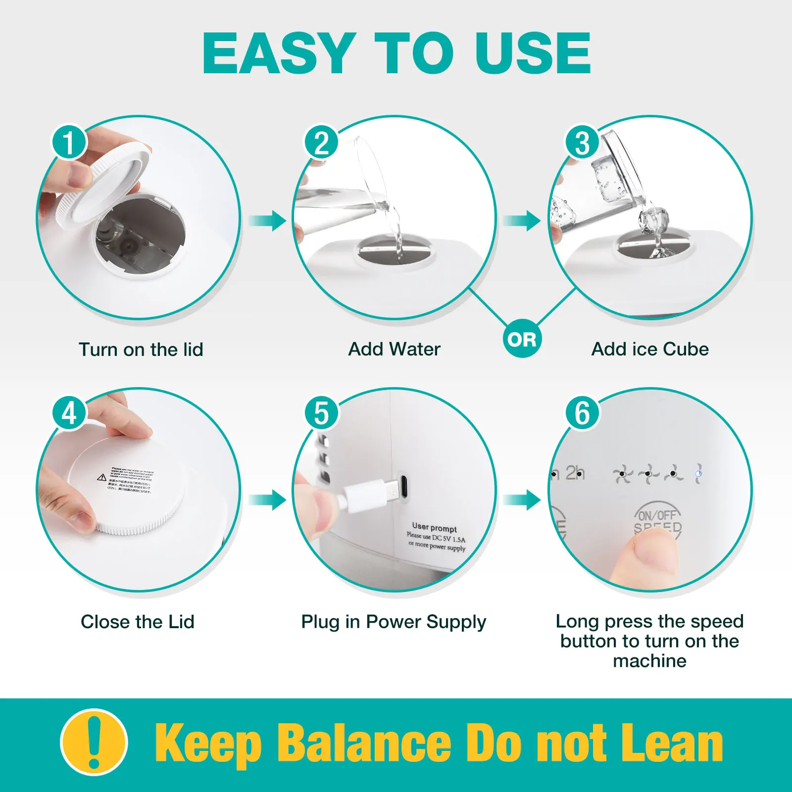 Fine mist cooling, using 4.5 μ M atomizer, does not get wet when blown for a long time, does not wet the tabletop;