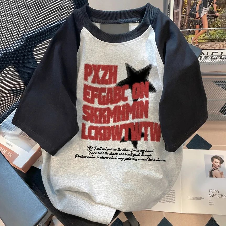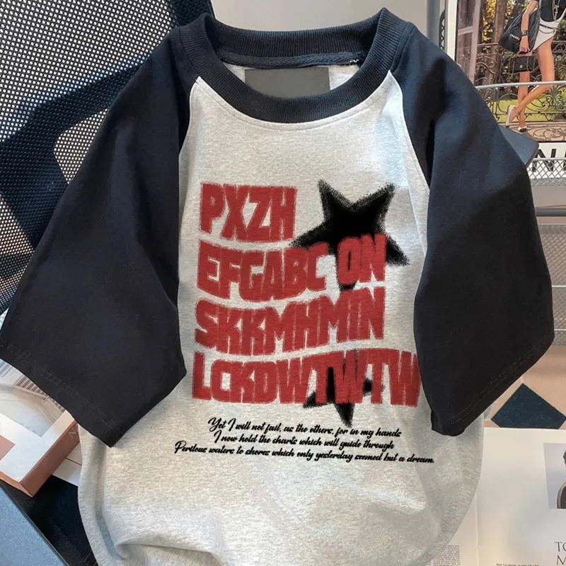 American personality raglan shoulders oversized T shirt Fashion Harajuku streetwear women Letter Printing fresh Short sleeve top