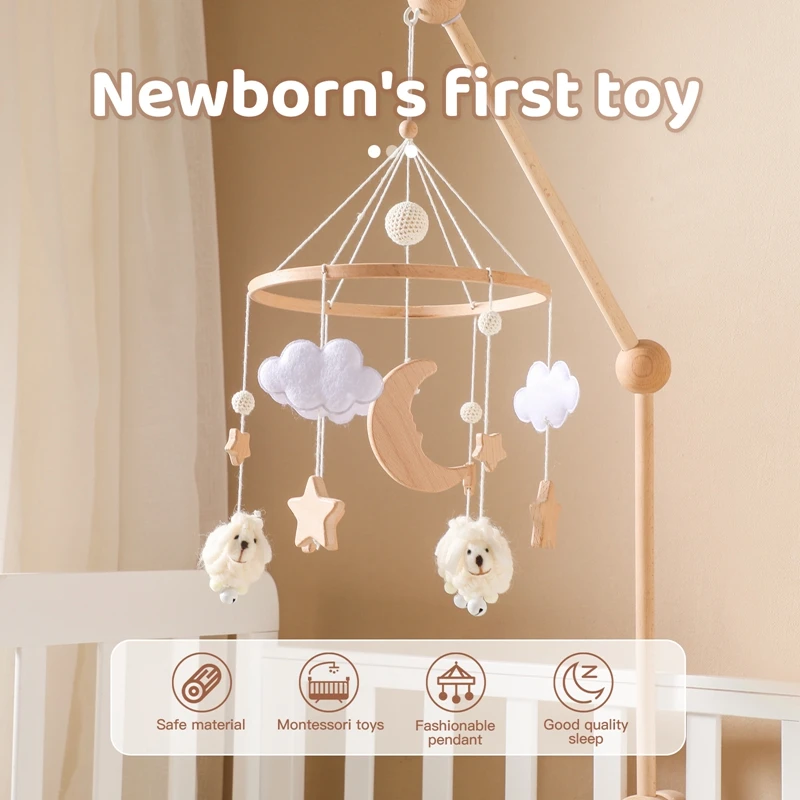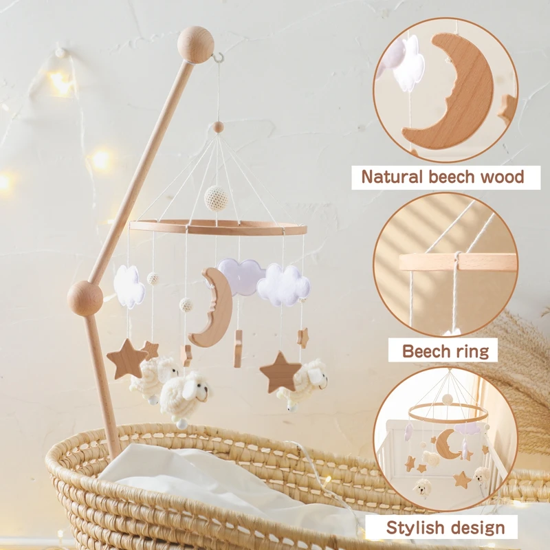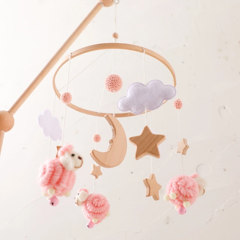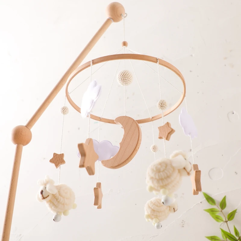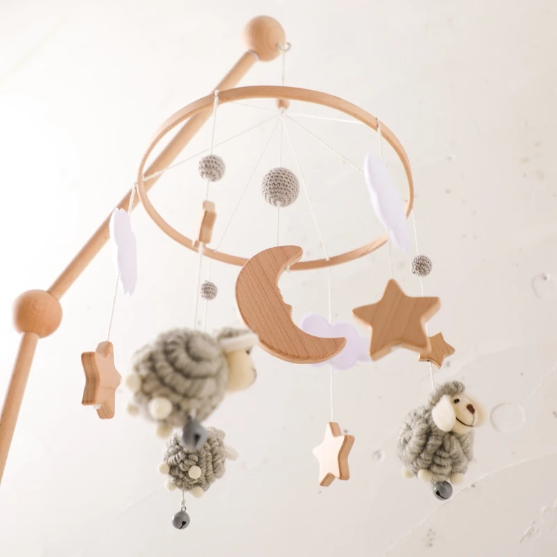 Baby Bed Bell Rattles Toy Newborn Wooden Star Moon Soft Felt Cloud Sheep Crib Mobiles Hanging Toy Infant Boy Girls Toys Bed Bell