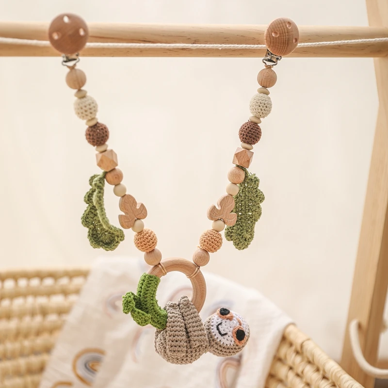 Baby Crochet Stroller Toys Wooden Hanging Ocean Stroller Teething Rattle Bell Animal Mobiles Gym Stroller Pendants Gifts Toys
