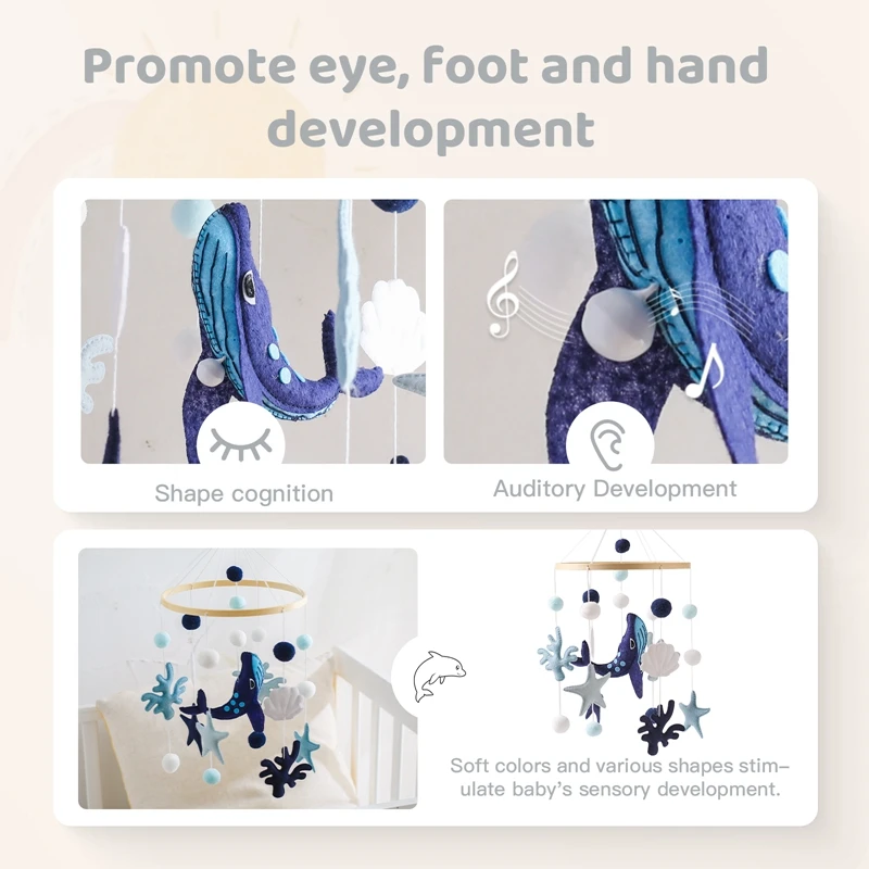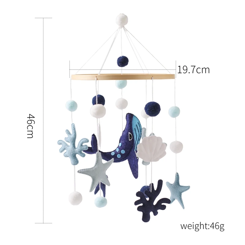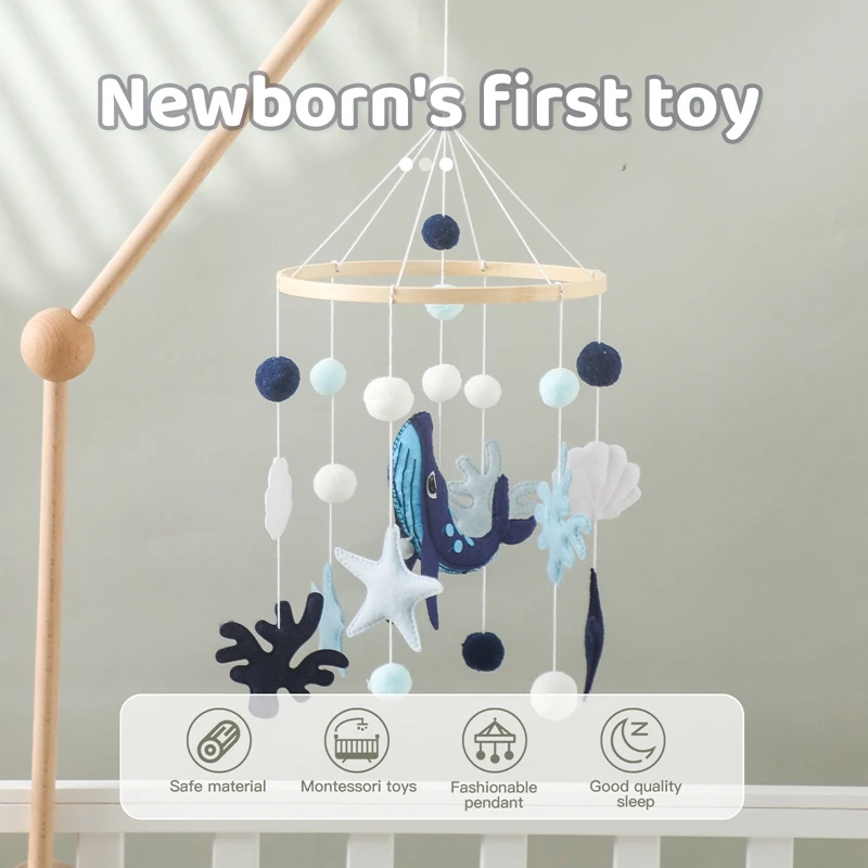 Baby Ocean Whale Rattle Toy 0-12 Month Bed Bell Mobile Wooden Newborn Felt Bell Hanging Toys Holder Bracket Infant Crib Toy Gift