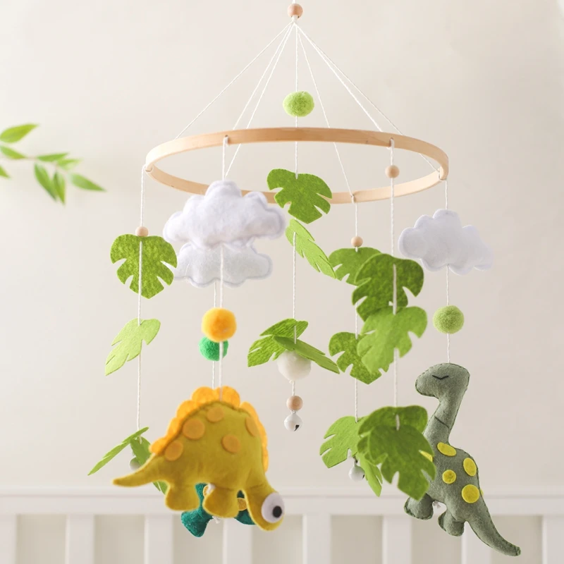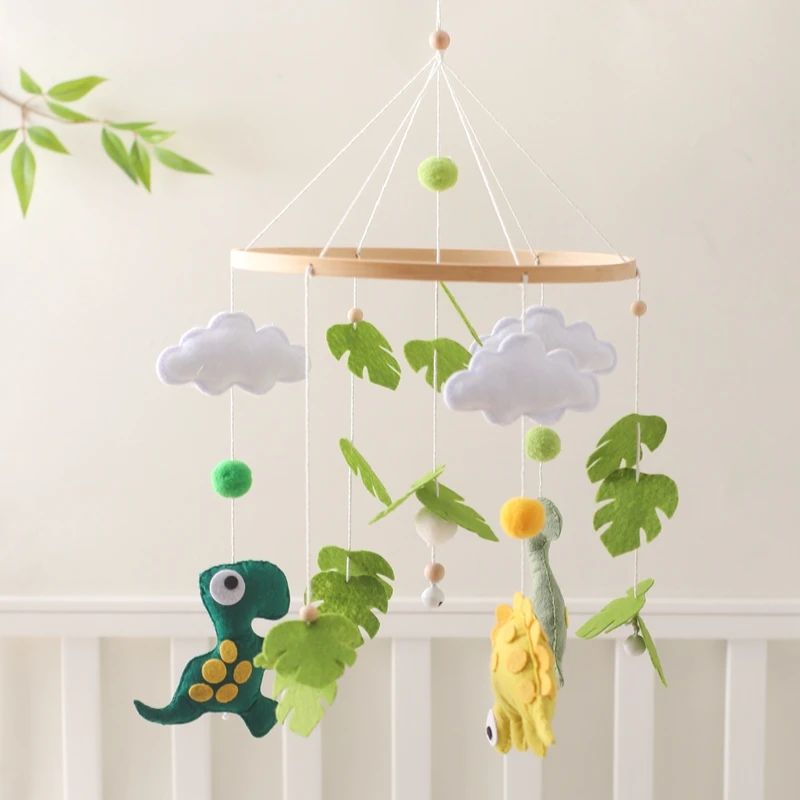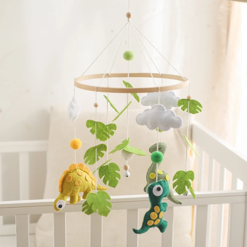 Baby Rattle Toys 0-12Months Wooden Crib Mobile Bed Bell Soft Felt Rainbow Clouds Hanging Bed Bell Mobile Crib Bracket Baby Gifts