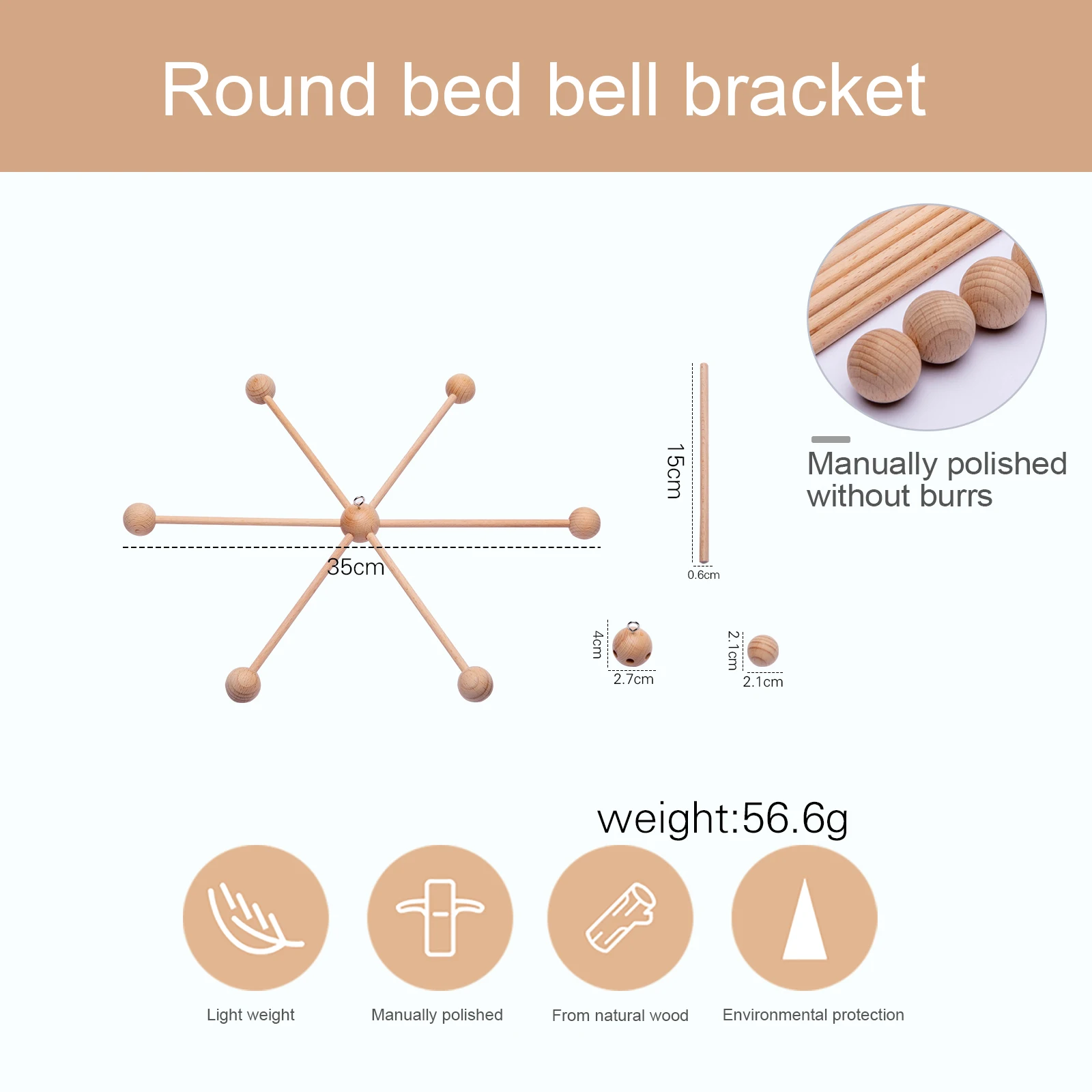Bite Bites 1set Baby Wooden Hanger Mobile Crib Hanger Frame Bed Bell For Newborn DIY Craft Accessories Baby Toy Children'S Goods