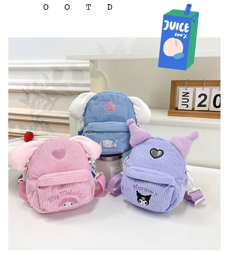 New kawaii Sanrio Plush Bag Cute My Melody Cinnamoroll bag Kulomi Small square Bag handbag Christmas Birthday Gift for Kids Girl
