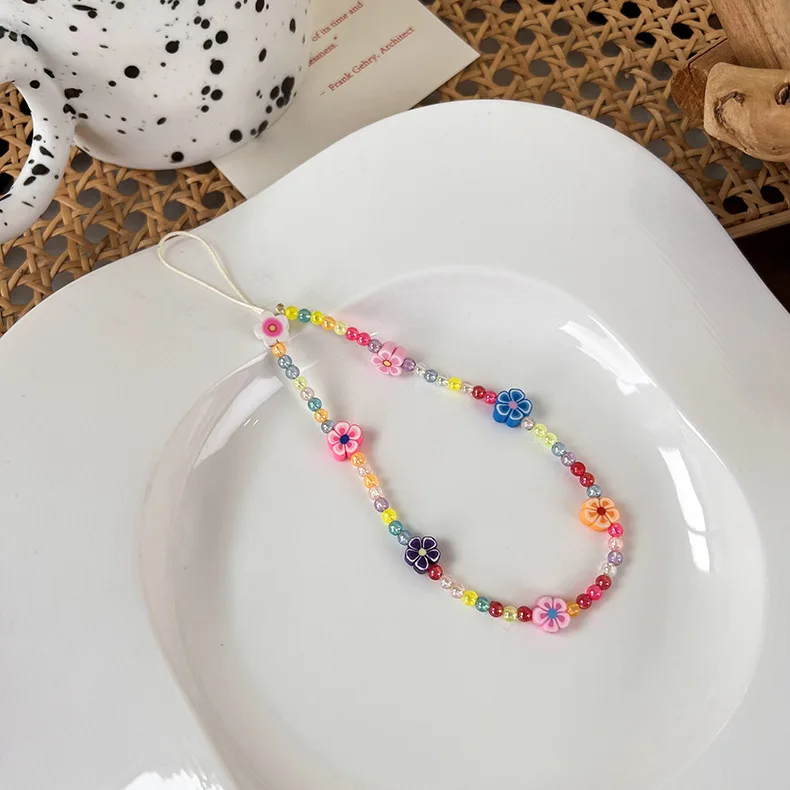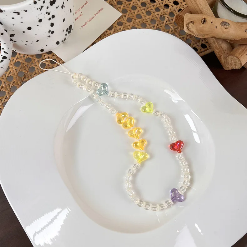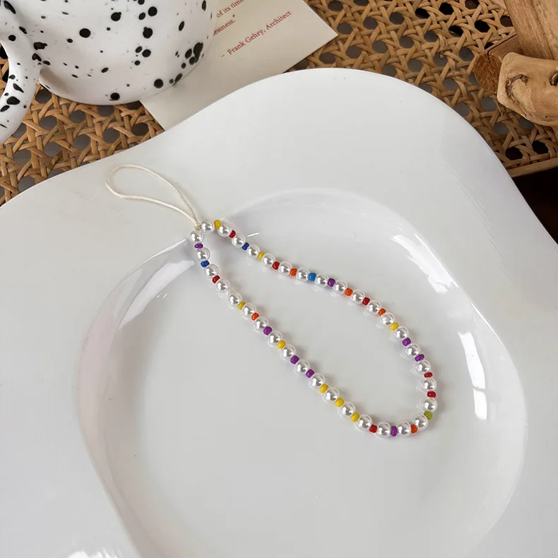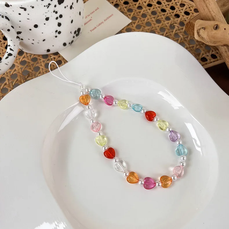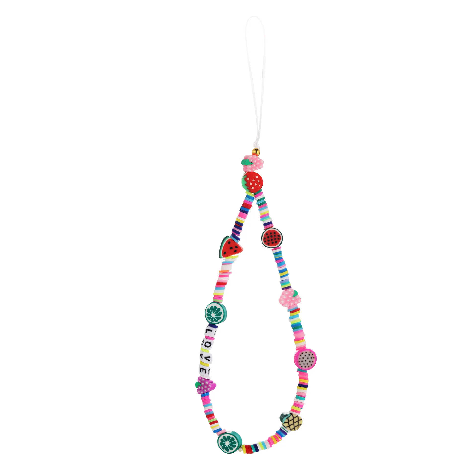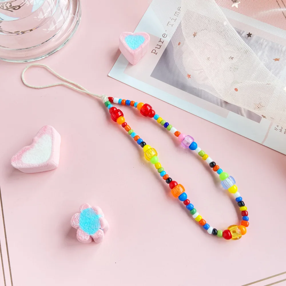 Colorful Acrylic Beads Mobile Phone Chain for Women Anti-lost Mobile Charm Strap Cute Keychain Bag Accessories Jewelry Gift