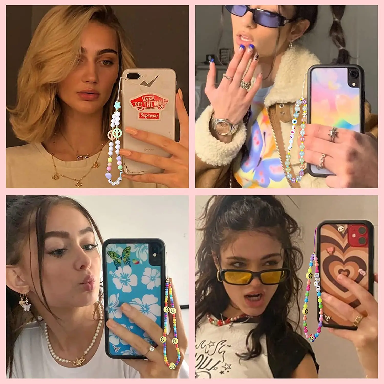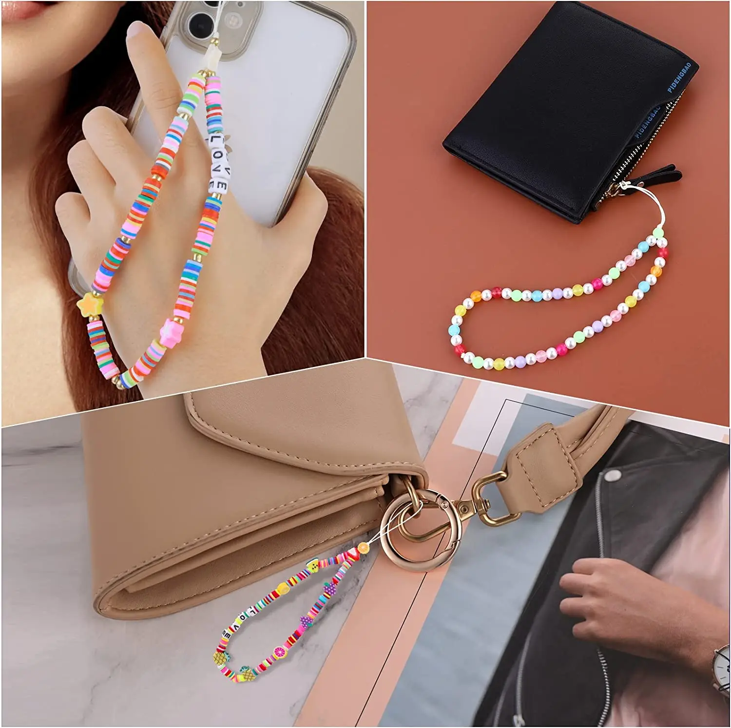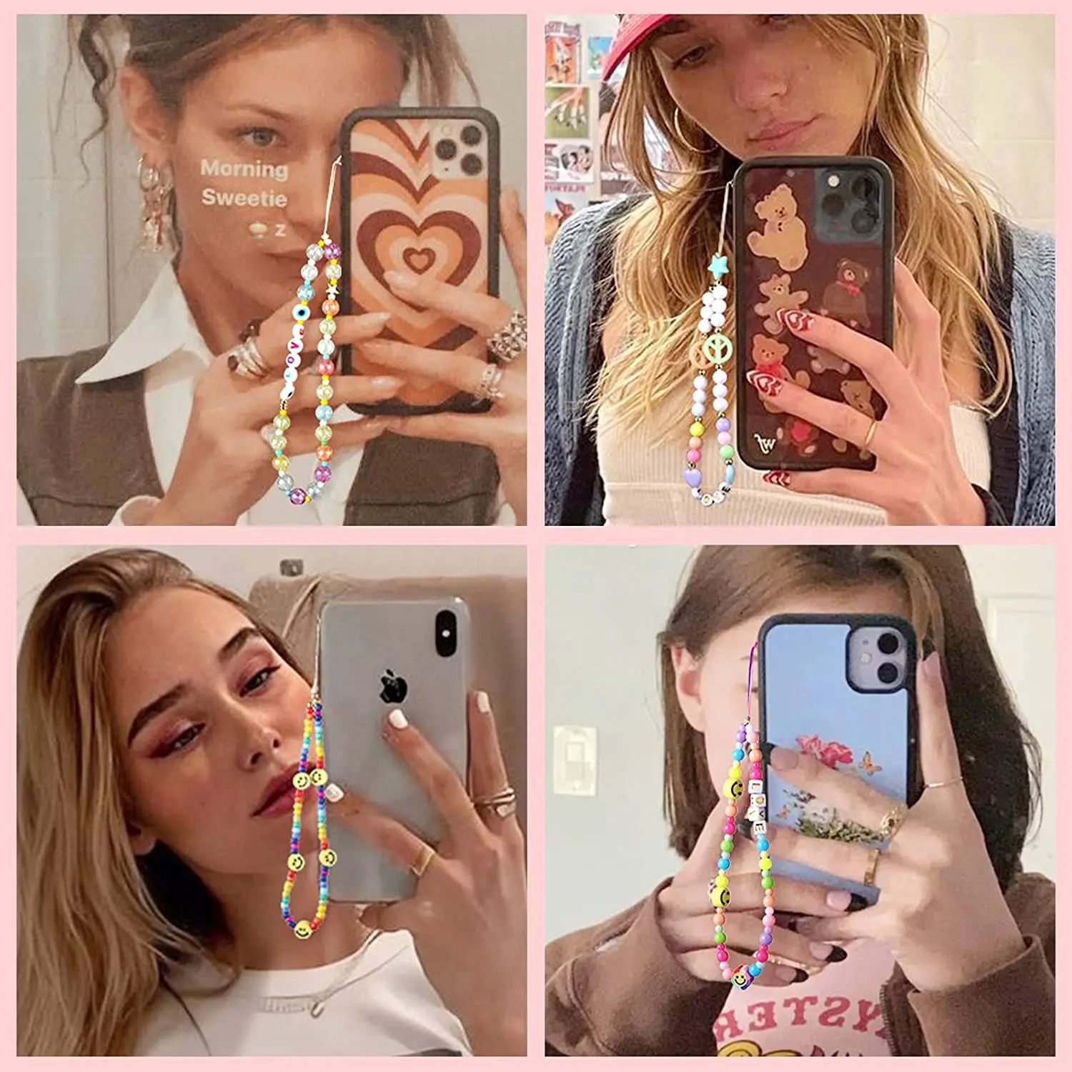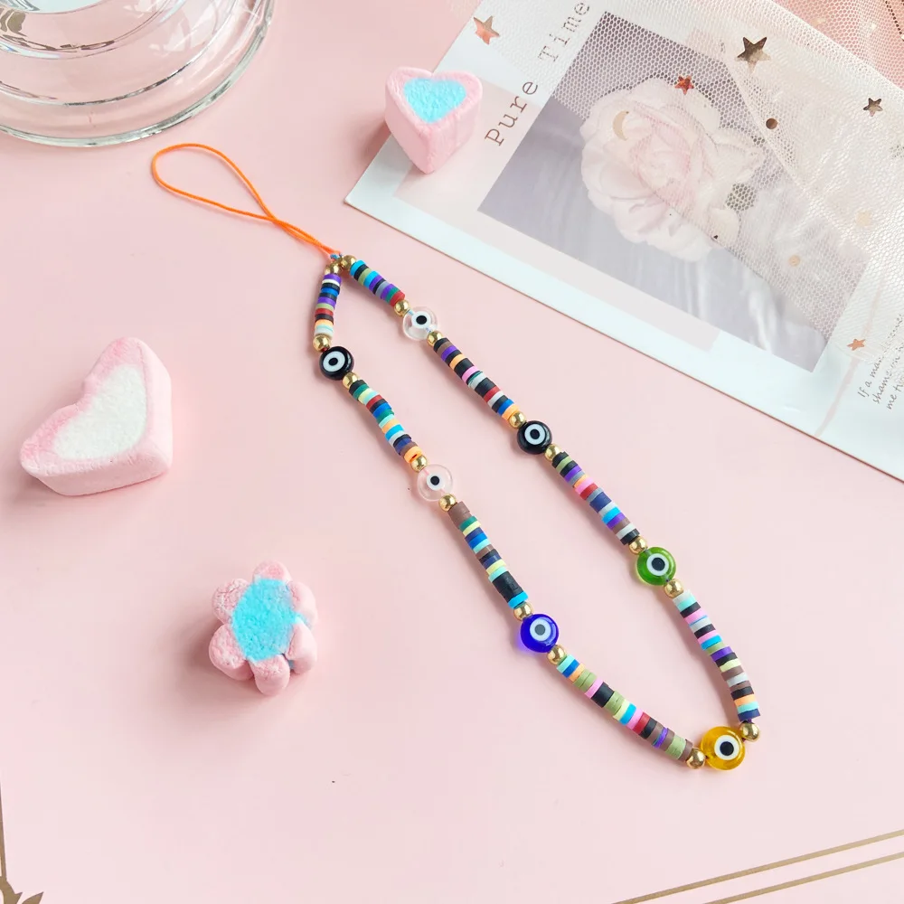 Colorful Acrylic Beads Mobile Phone Chain for Women Anti-lost Mobile Charm Strap Cute Keychain Bag Accessories Jewelry Gift
