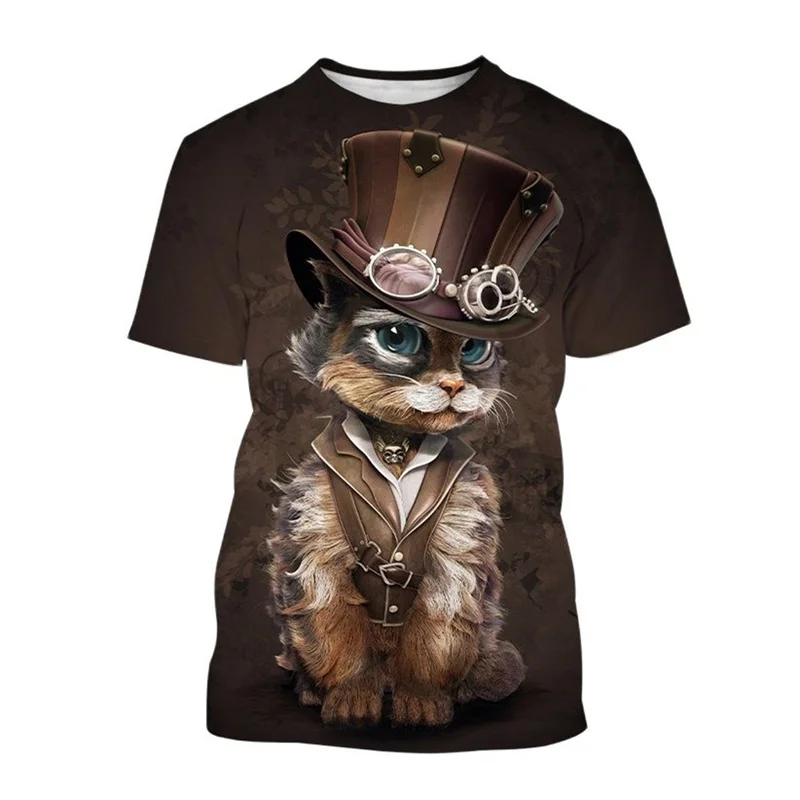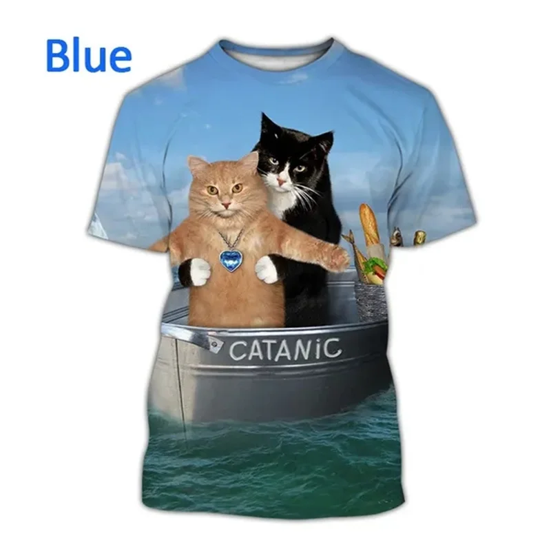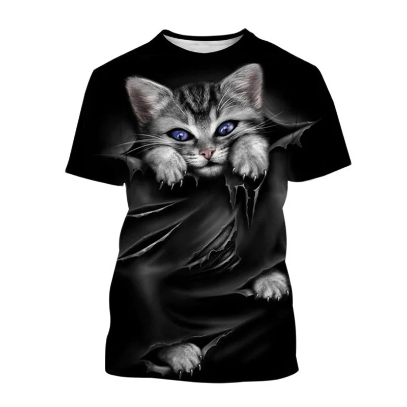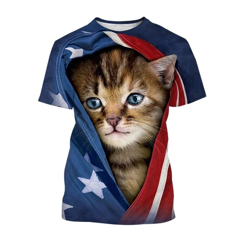 Cute Cat Graphic T Shirt for Men Cool Designs 3D Cats Printed T-shirt Tops Funny Kid Tee Shirts Harajuku Fashion Womens Clothing