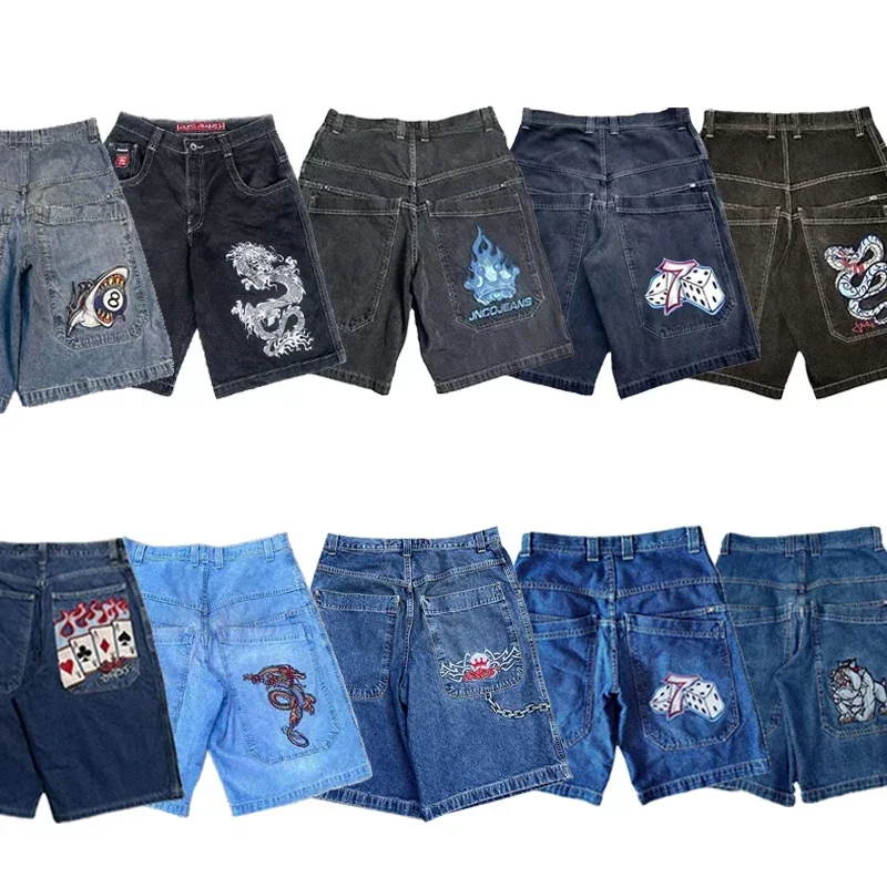 Denim Shorts New Men And Women Street Wind Y2k-Tops1 Harajuku Pocket Casual Hip -hop Loose Shorts Summer Gothic Shorts