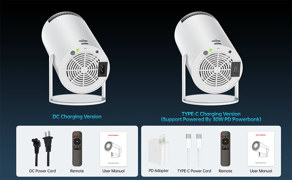 - TYPE-C Charging Version,Support Powered By 30W PD Powerbank, Patent Design, Use Friendly,EGOBAS HY300 Plus projector is Much better than any AC power projector!