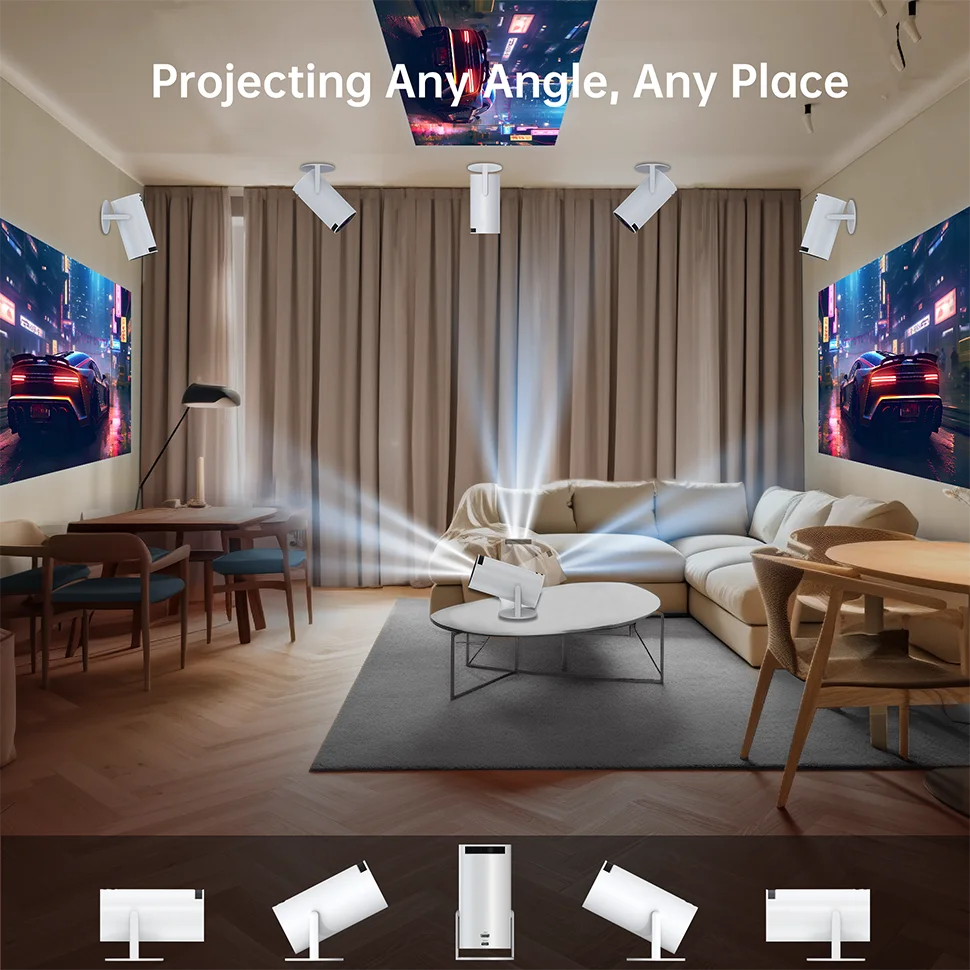 🎬【180°flexible projection angle,Supports Dual WiFi6 Connectivity and BT 5.0】