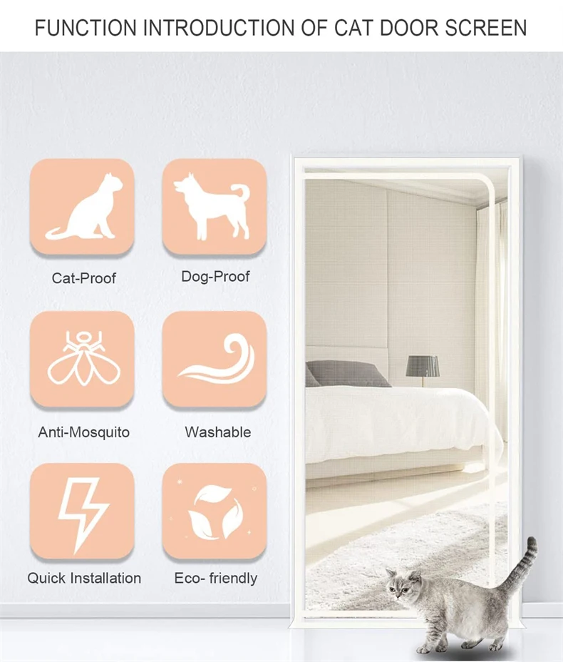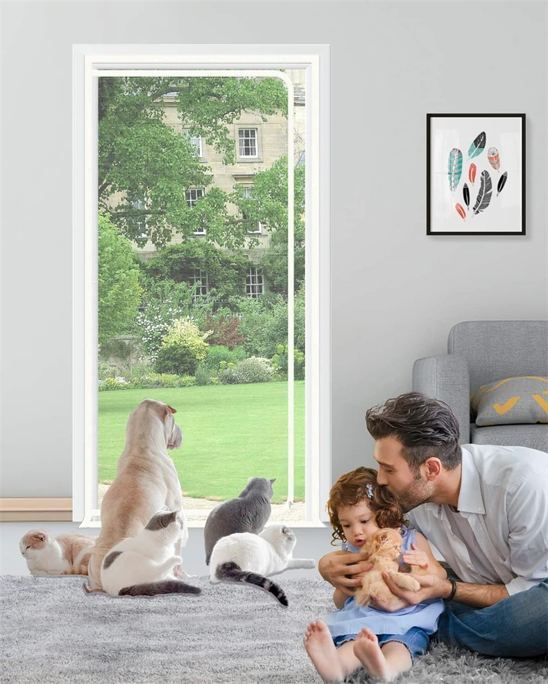 made from thickened vinyl-coated steel wire which is much thicker and more durable than normal fiberglass screen material. The scratch resistant screen door can hold up well to cats/dogs claws and bites. Perfectly meets pets owner’s practical needs.