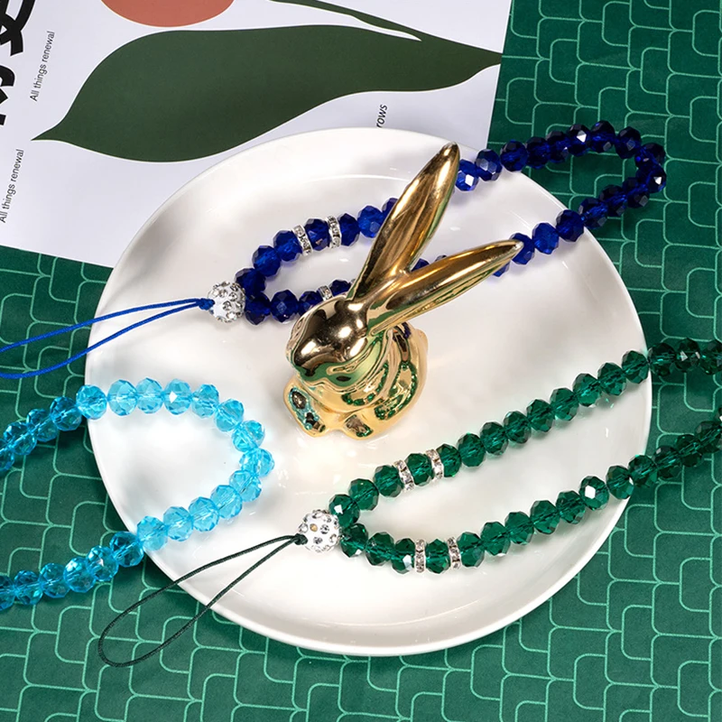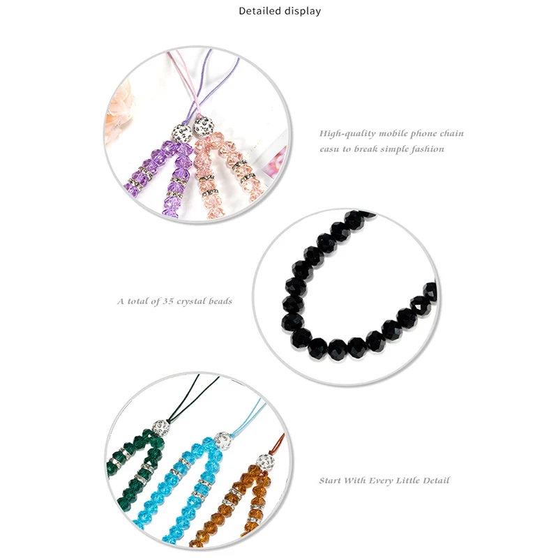 Fashion Mobile Phone Chain Elegant Acrylic Crystal Beads Cellphone Strap Lanyard Hanging Cord Keychain Jewelry Accessories