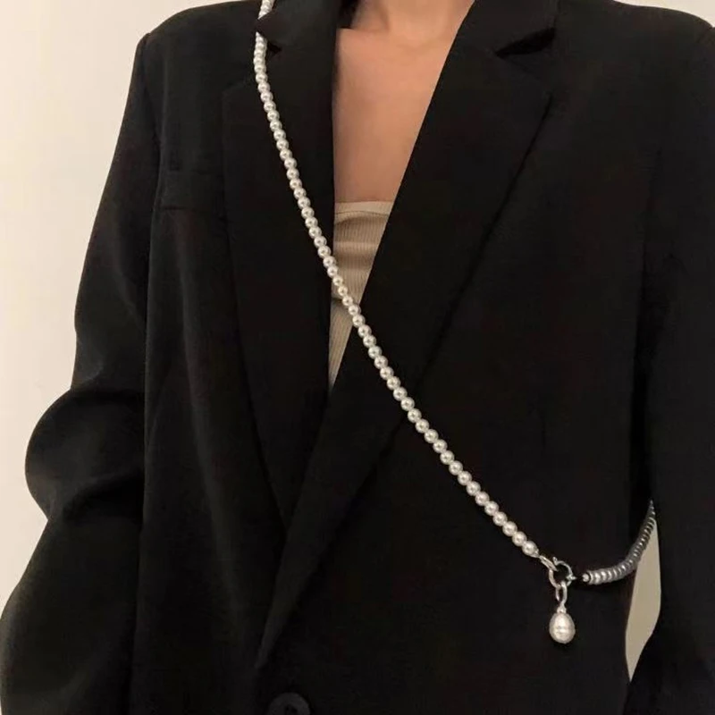 This pearl clothing chain features a crossbody design, making it easy to hang on clothes and easy to carry. No matter where you are, you can easily pick it up, adding to your fashion sense.