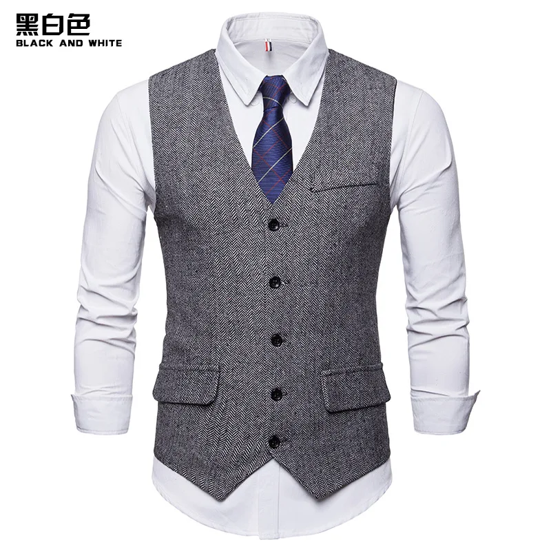 Fashion Suit Vest Men Formal Dress Vest Colete Masculino Herringbone Gilet Fitness Sleeveless Jacket Wedding Waistcoat Men XXL