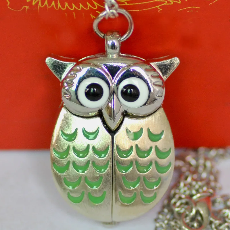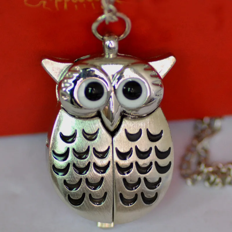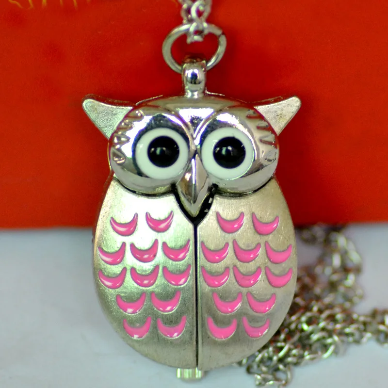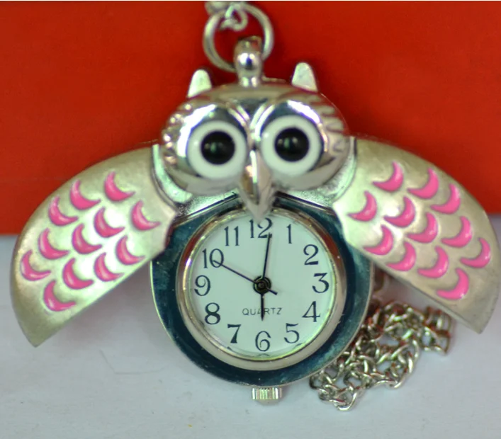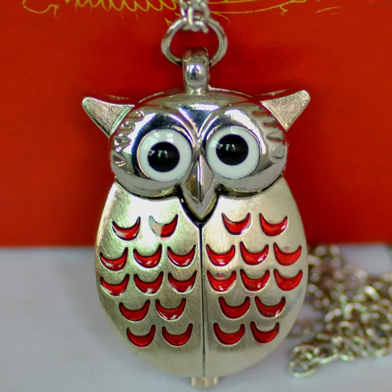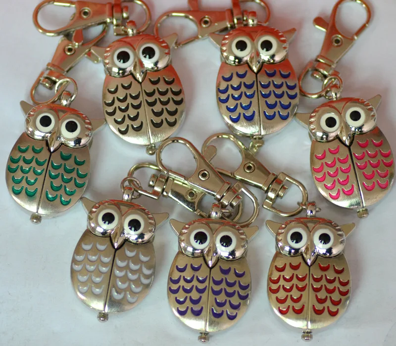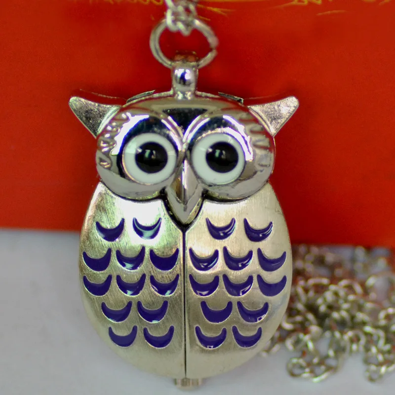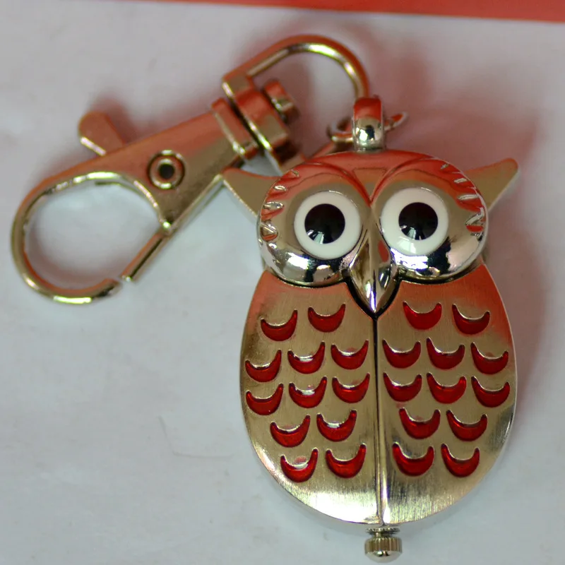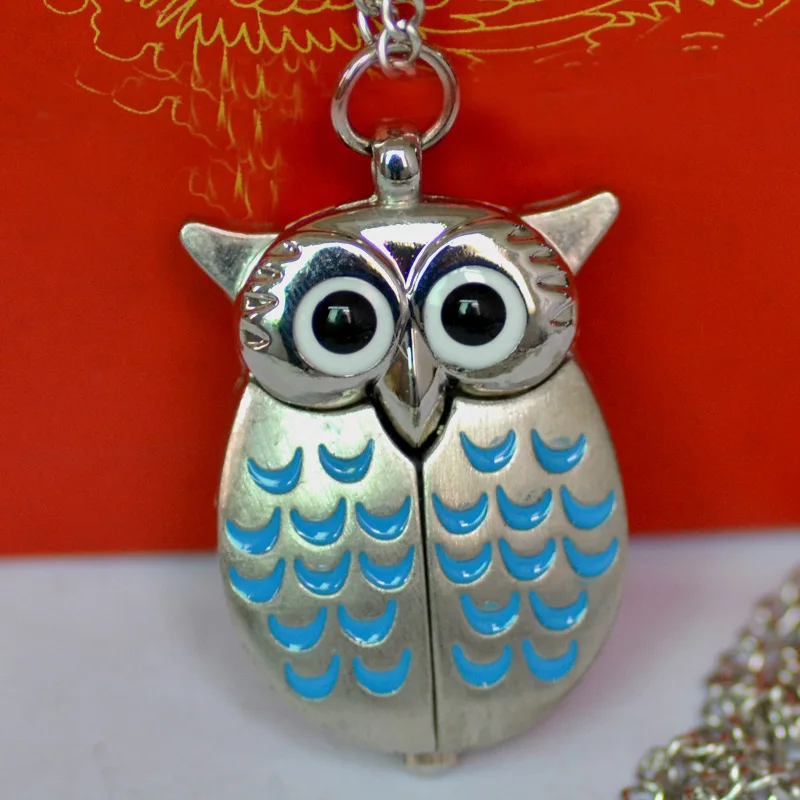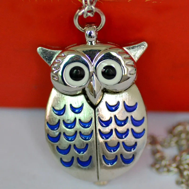 Fashion Vintage Man Women Pocket Watch Alloy Retro Owl Shape Clock Pendant Long Necklace Chain keychain Watches Birthday Gifts
