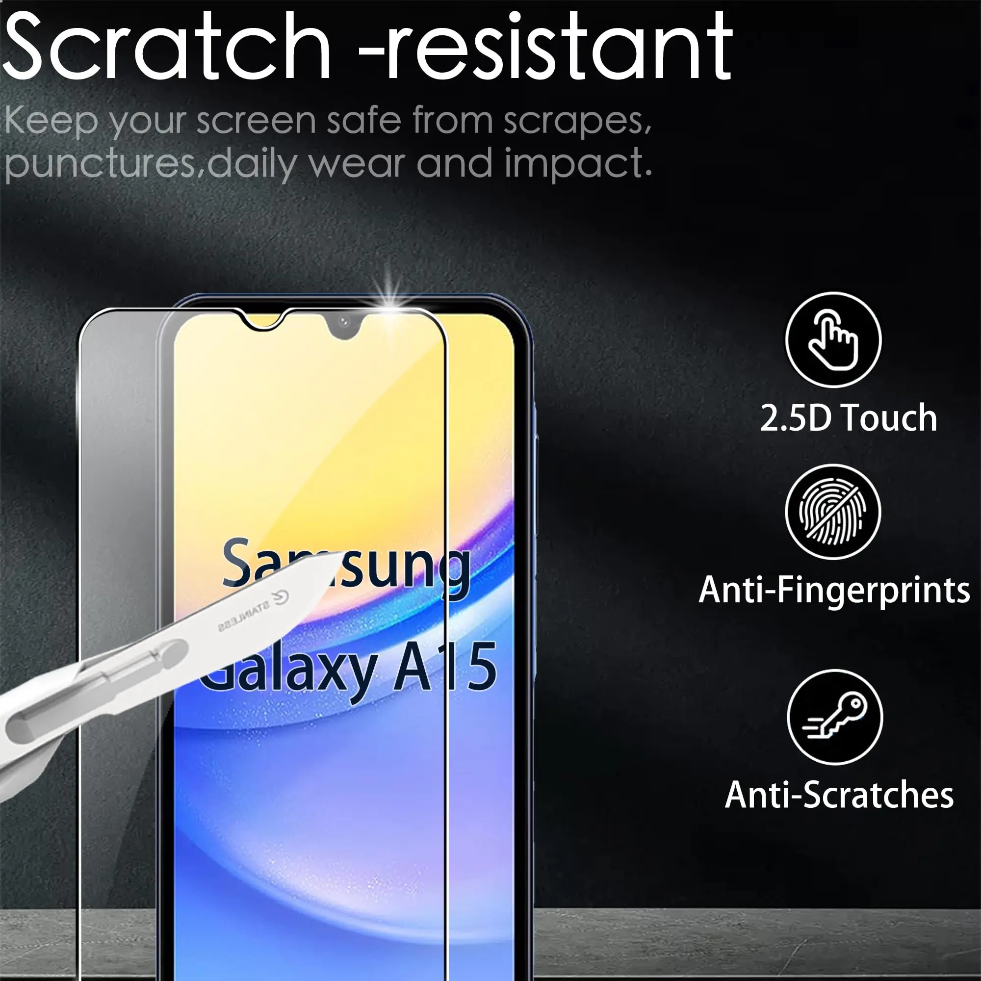 For Galaxy A15 Screen Protector Samsung 4G 5G, Tempered Glass HD 9H High Aluminum Transparent Clear Anti Scratch Case Friendly