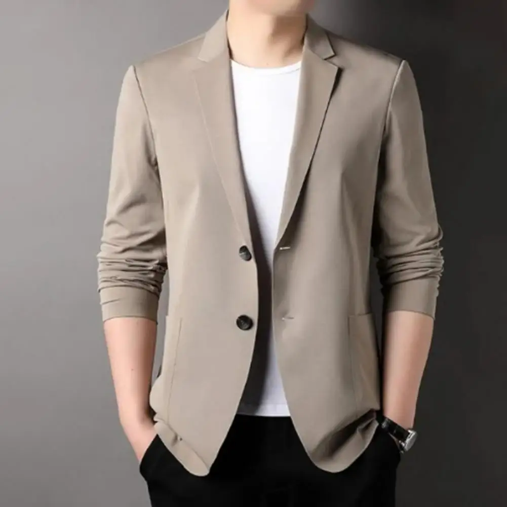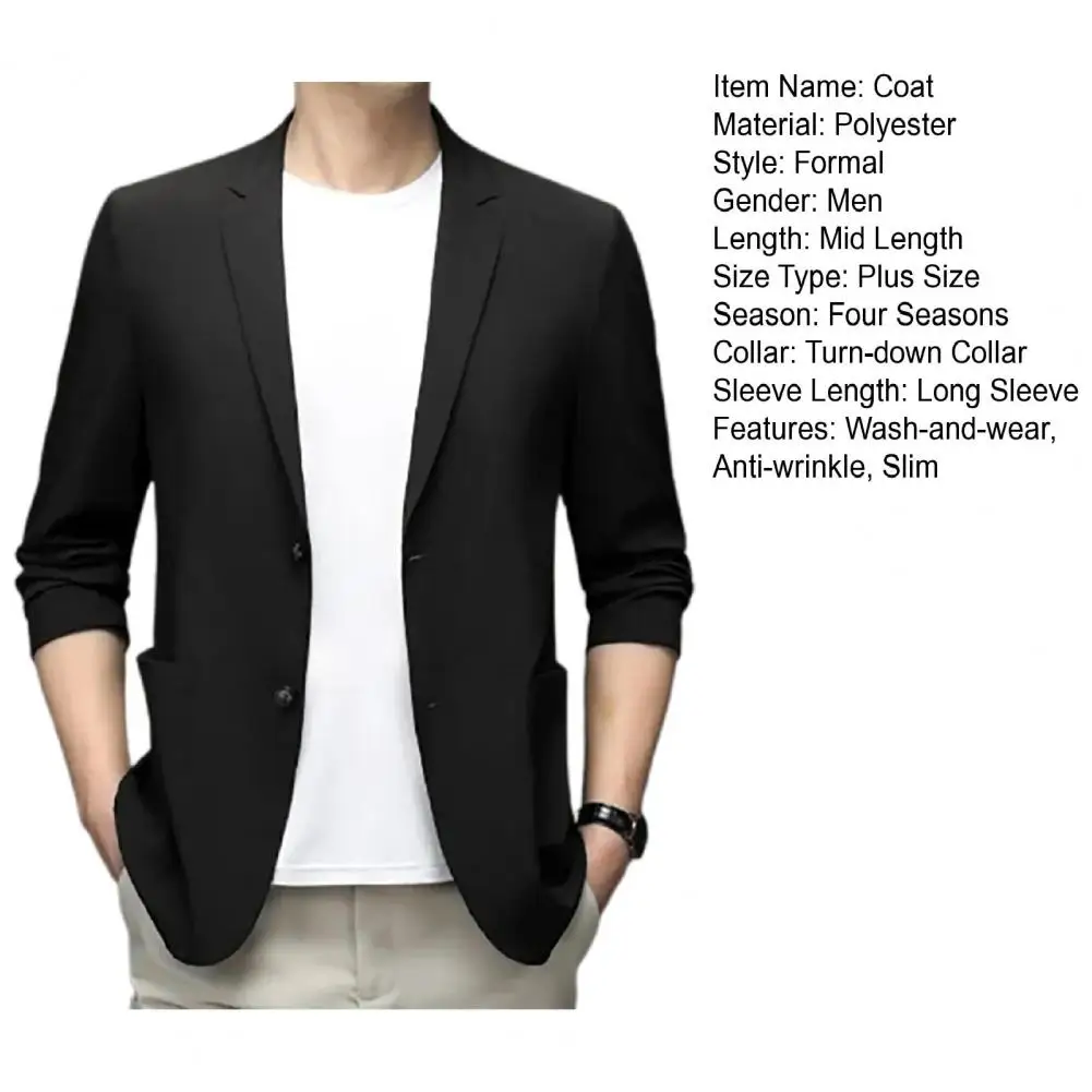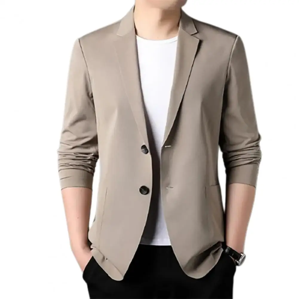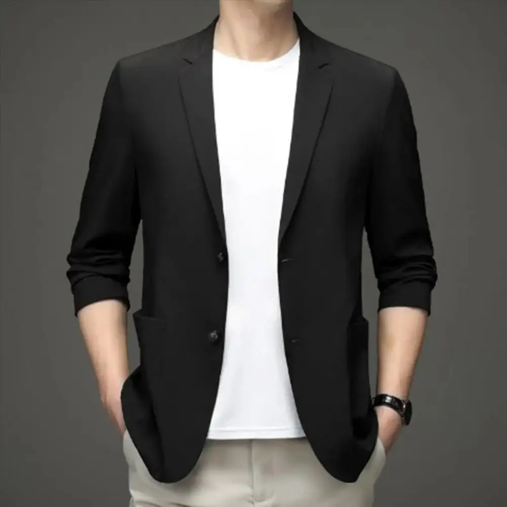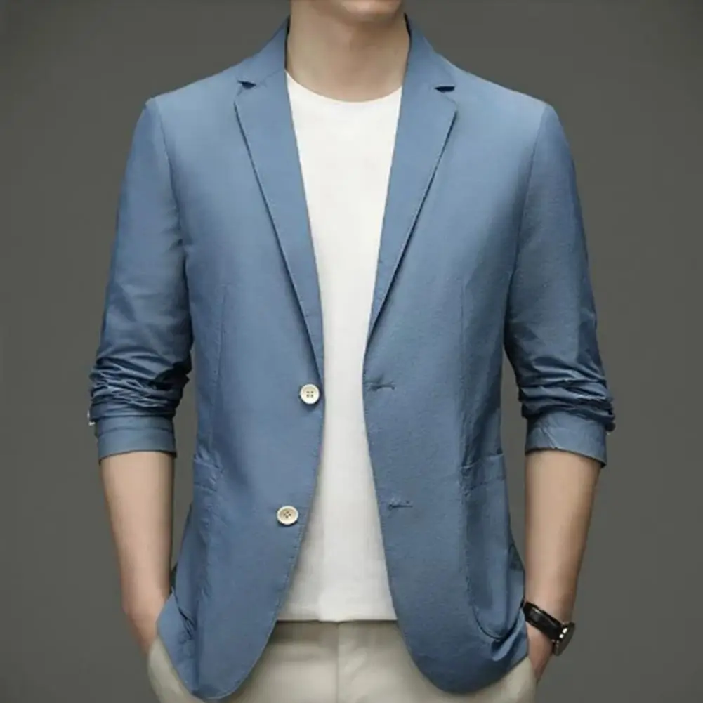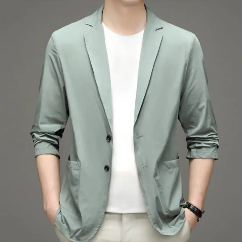 Formal Summer Suit Coat Business Coat Lapel Long Sleeves Double Buttons Straight Pockets Cardigan Loose Men thin Work Jacket
