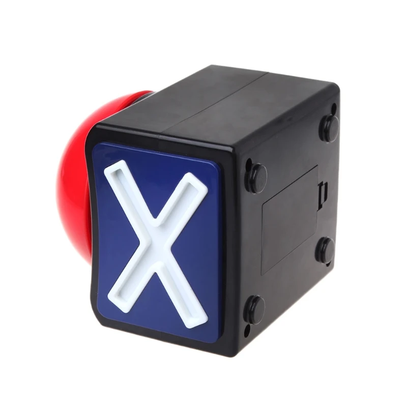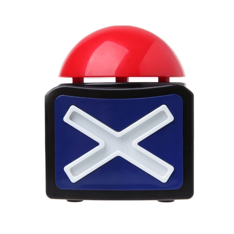 Simply press the red buzzer to make it light up, it will buzz loudly.