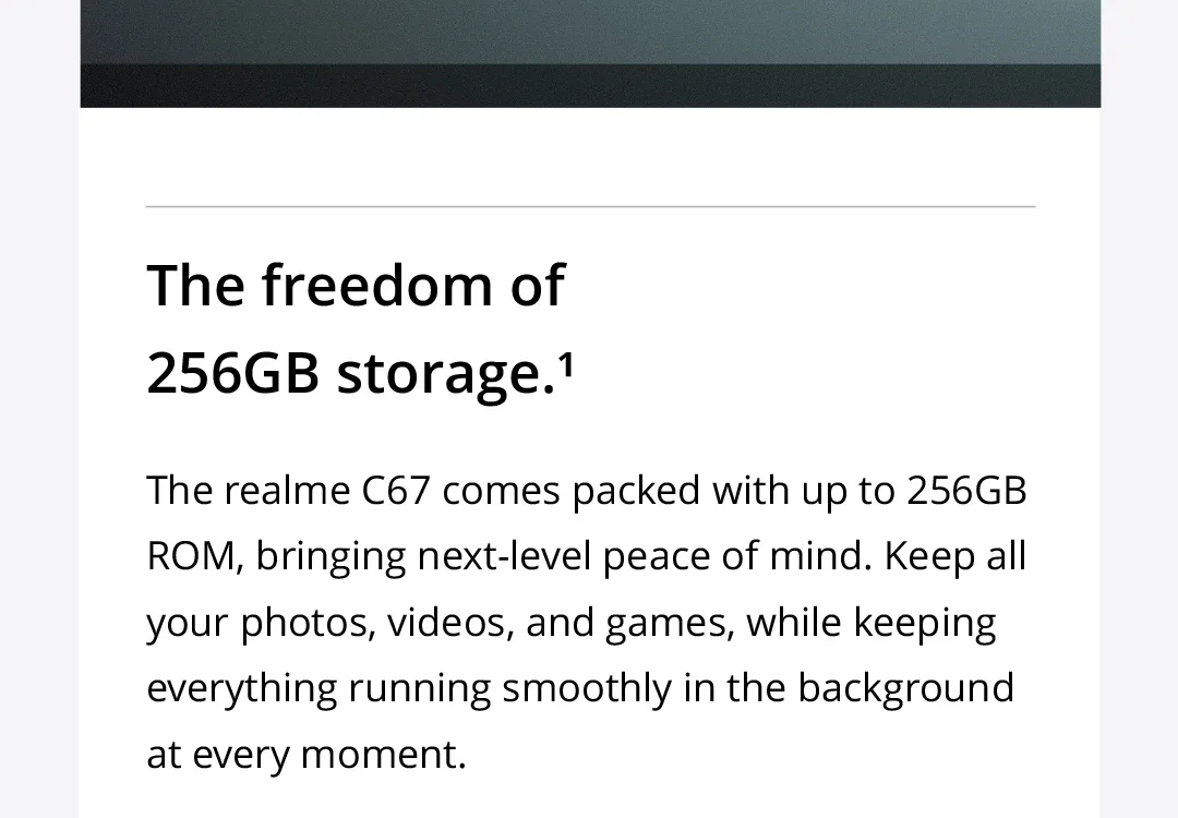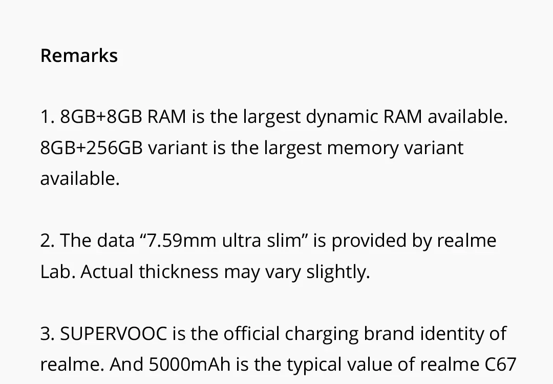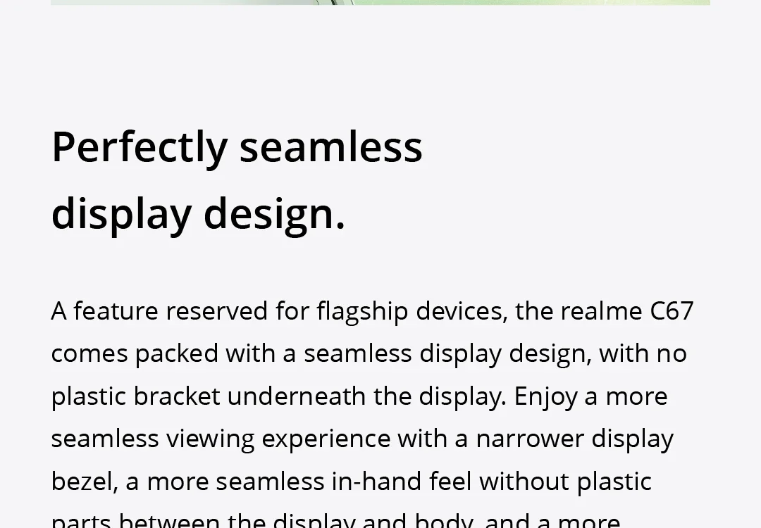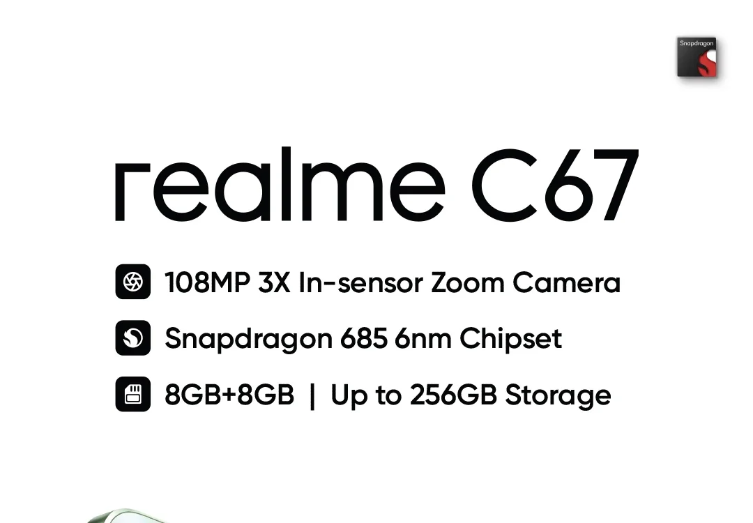 • Powerful Hardware :Equipped with Qualcomm 685 SoC and a 5000mAh battery, this realme C67 ensures smooth operation and long-lasting performance.