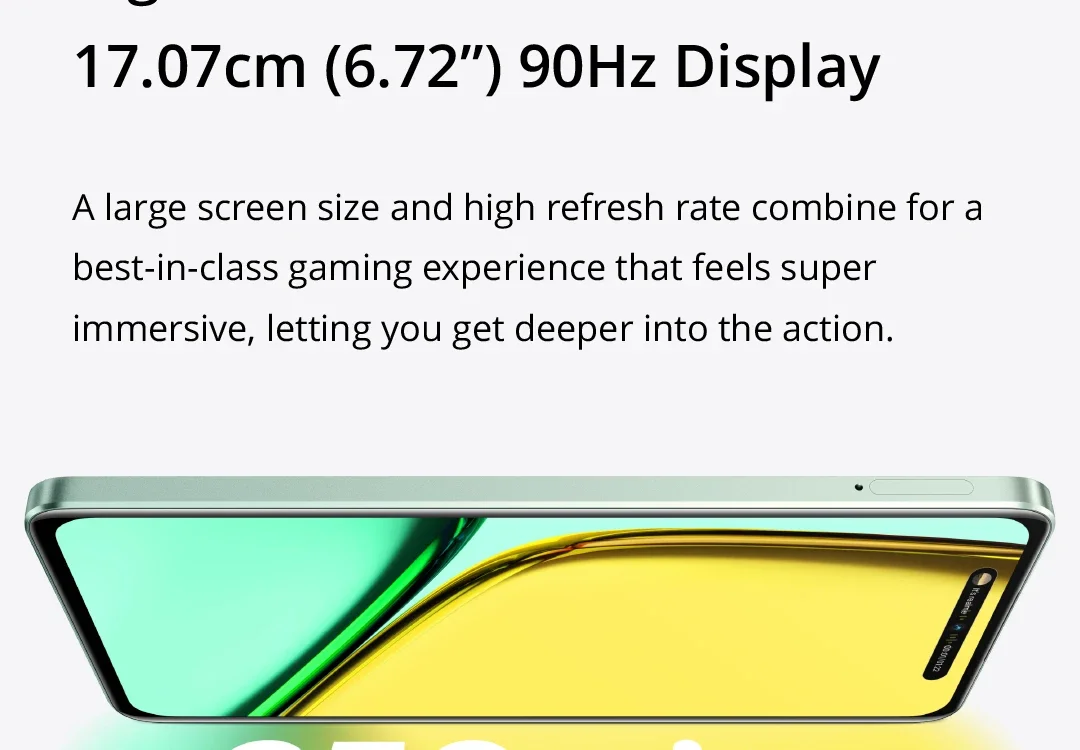 • Full Screen Experience :The 6.72'' display with 90Hz refresh rate provides an immersive visual experience, enhancing your gaming and video viewing.