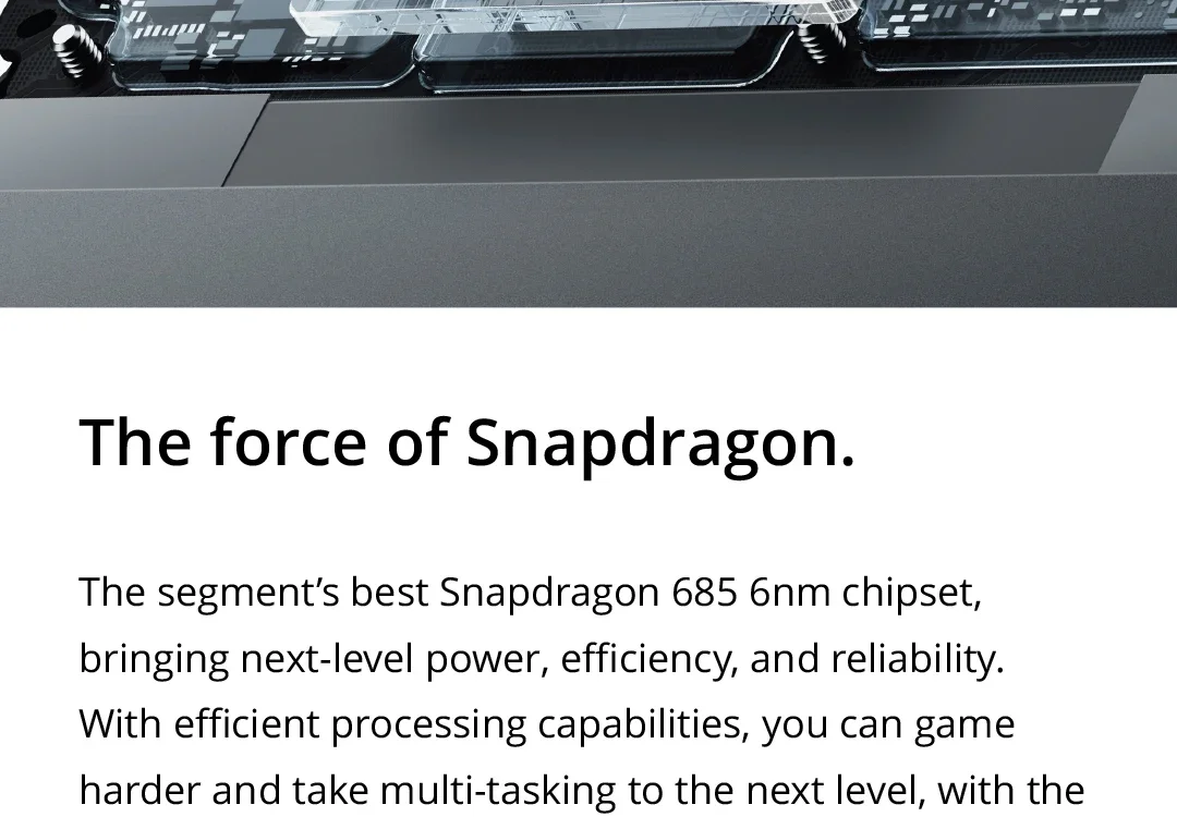 CPU--------------Snapdragon 685 Octa-core Processor, 6nm