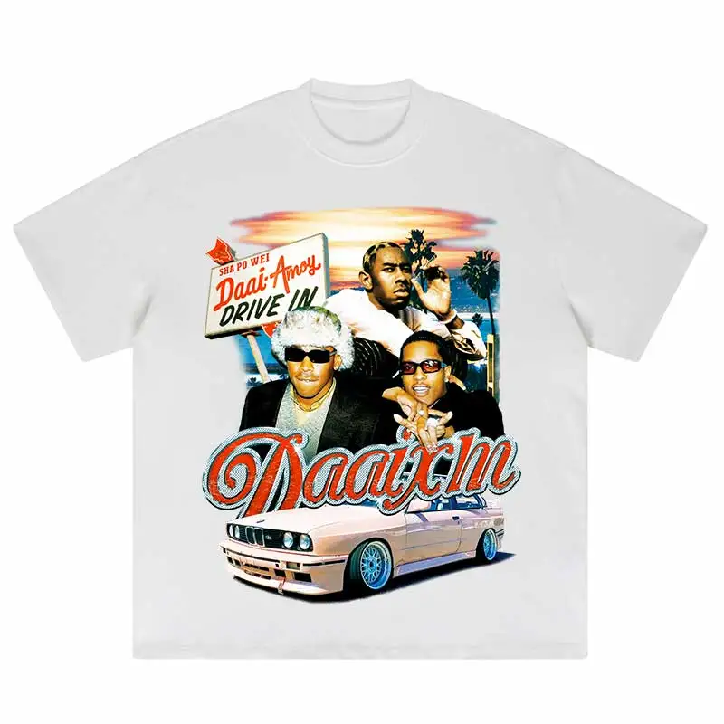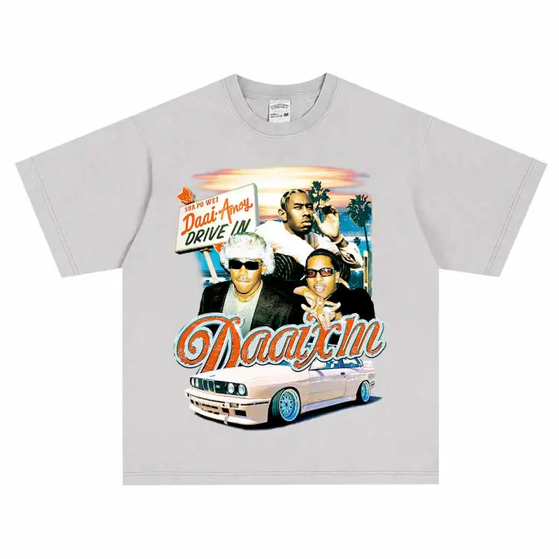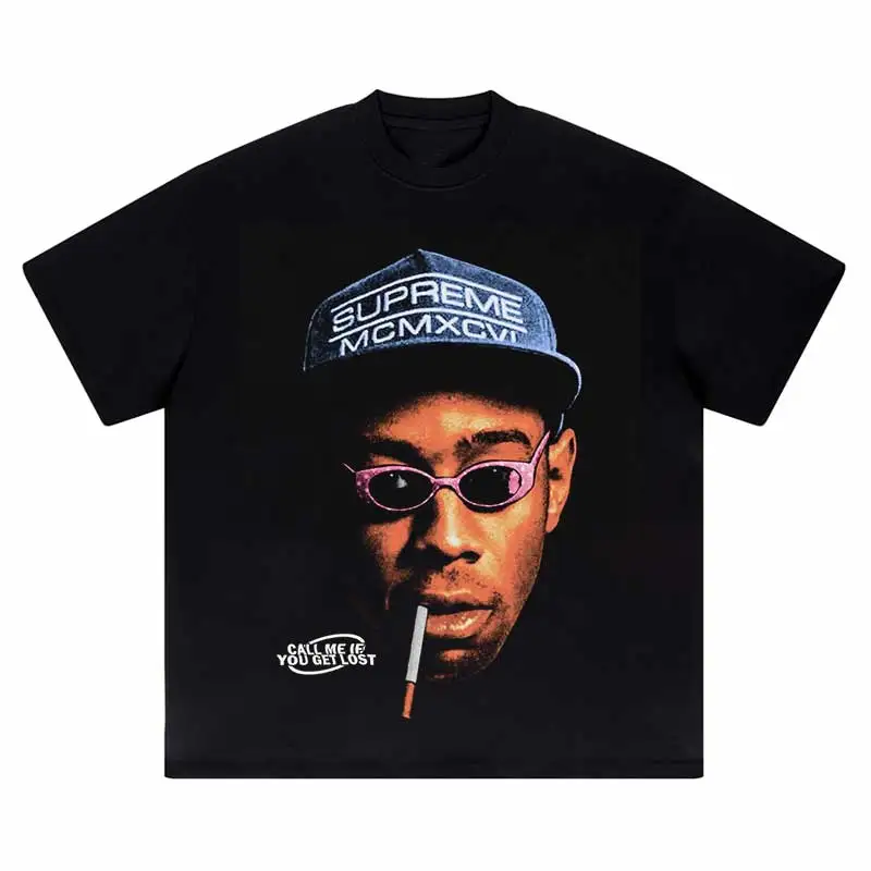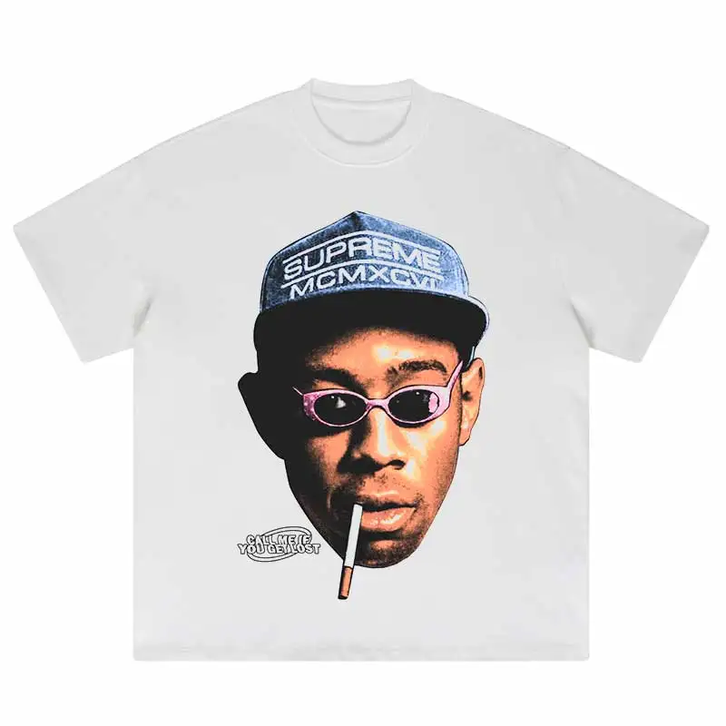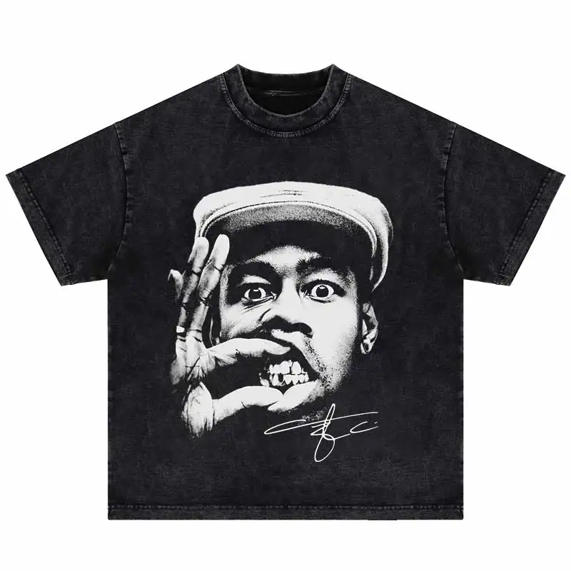 Hip Hop Portrait Graphic Printed Tshirt Short Sleeve Tops 2024 Loose Street Men's Cotton Streetwear Harajuku Oversized T-Shirt