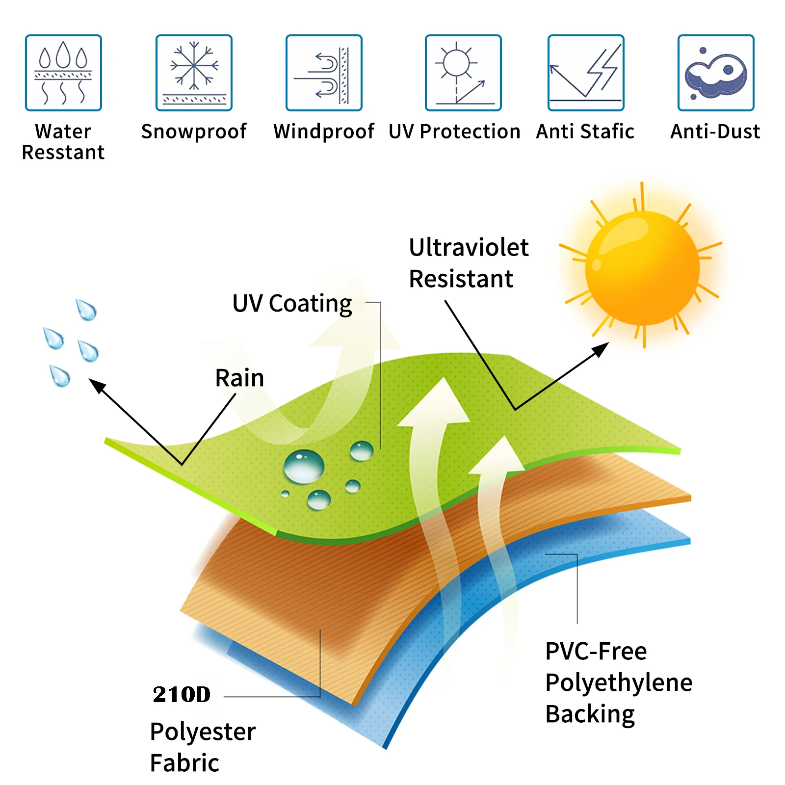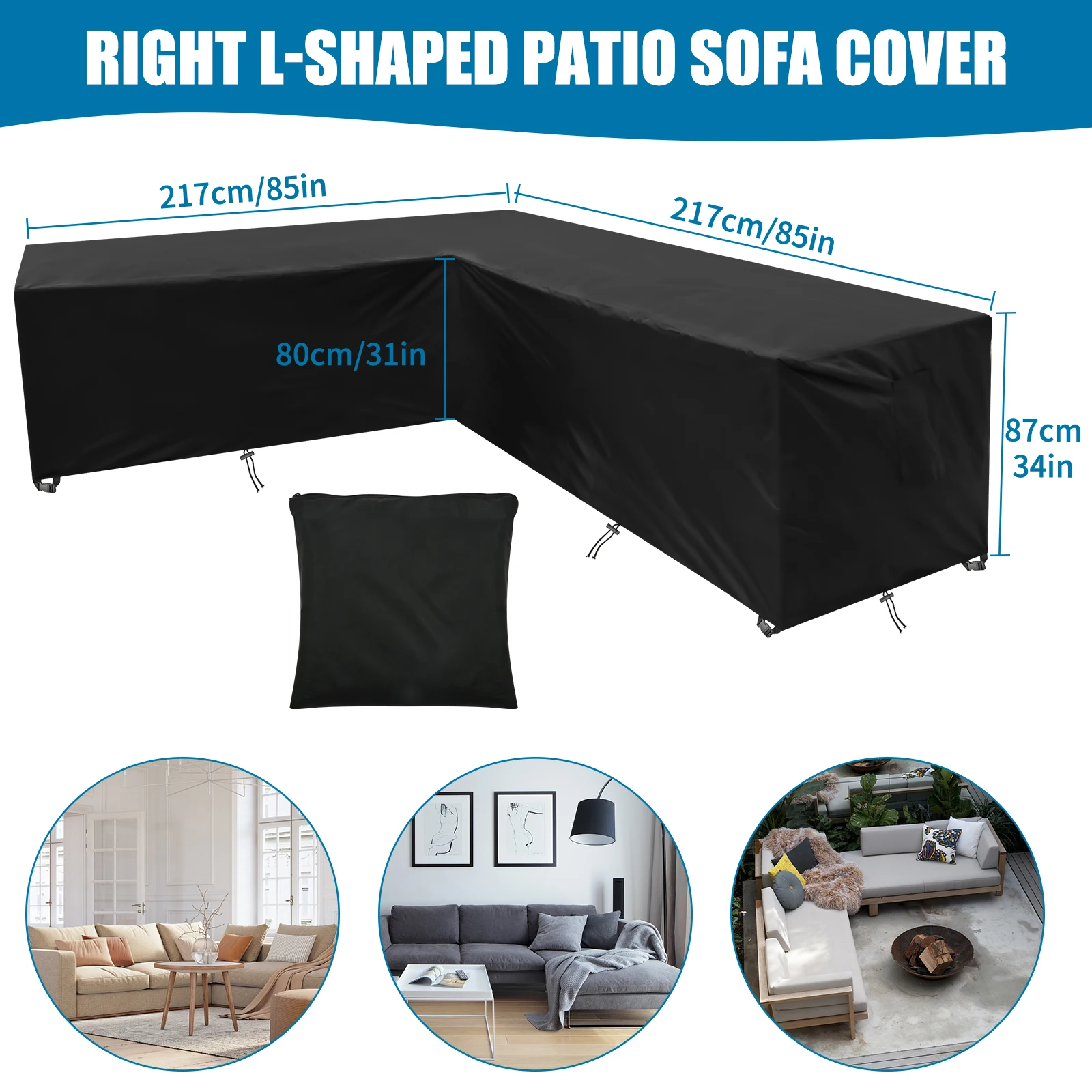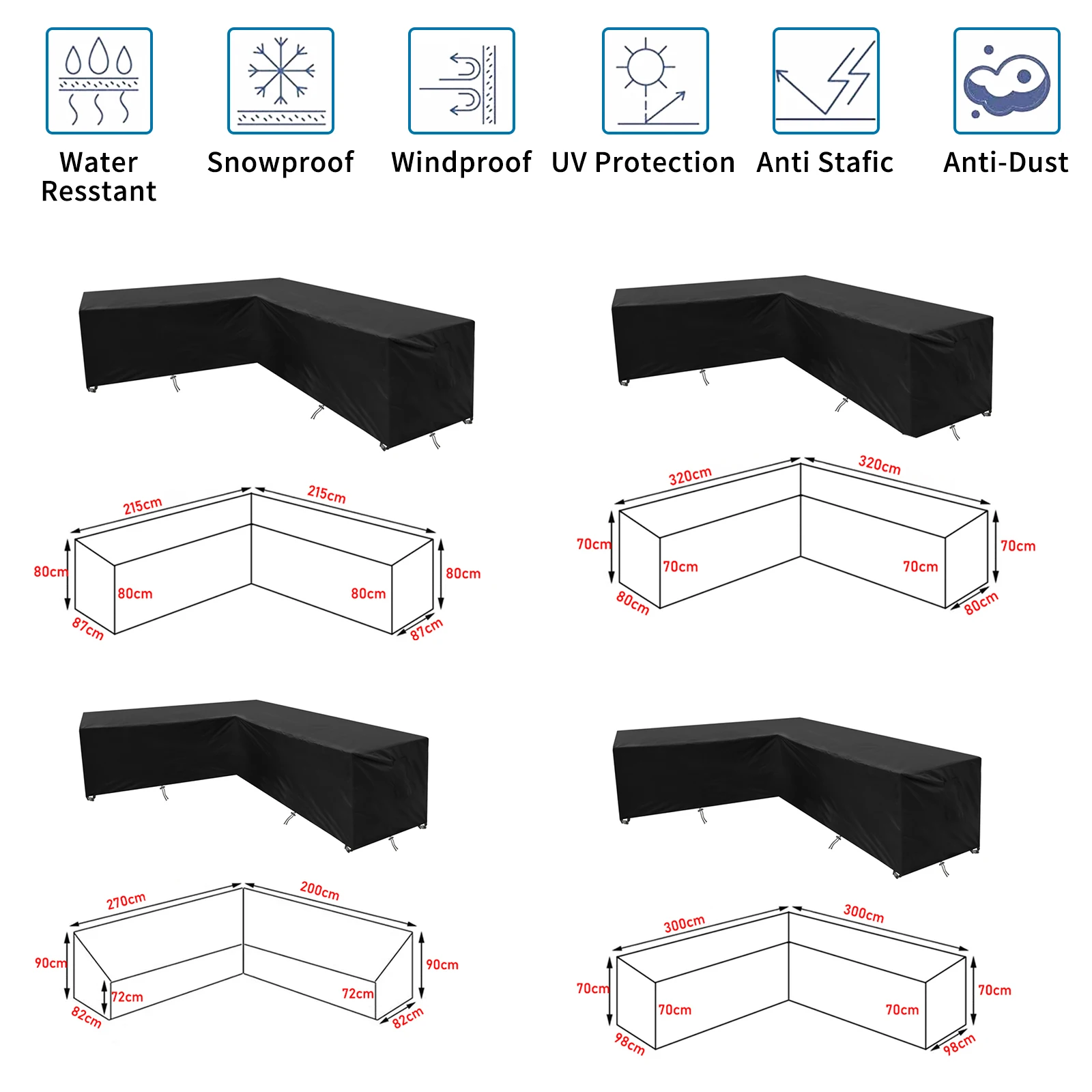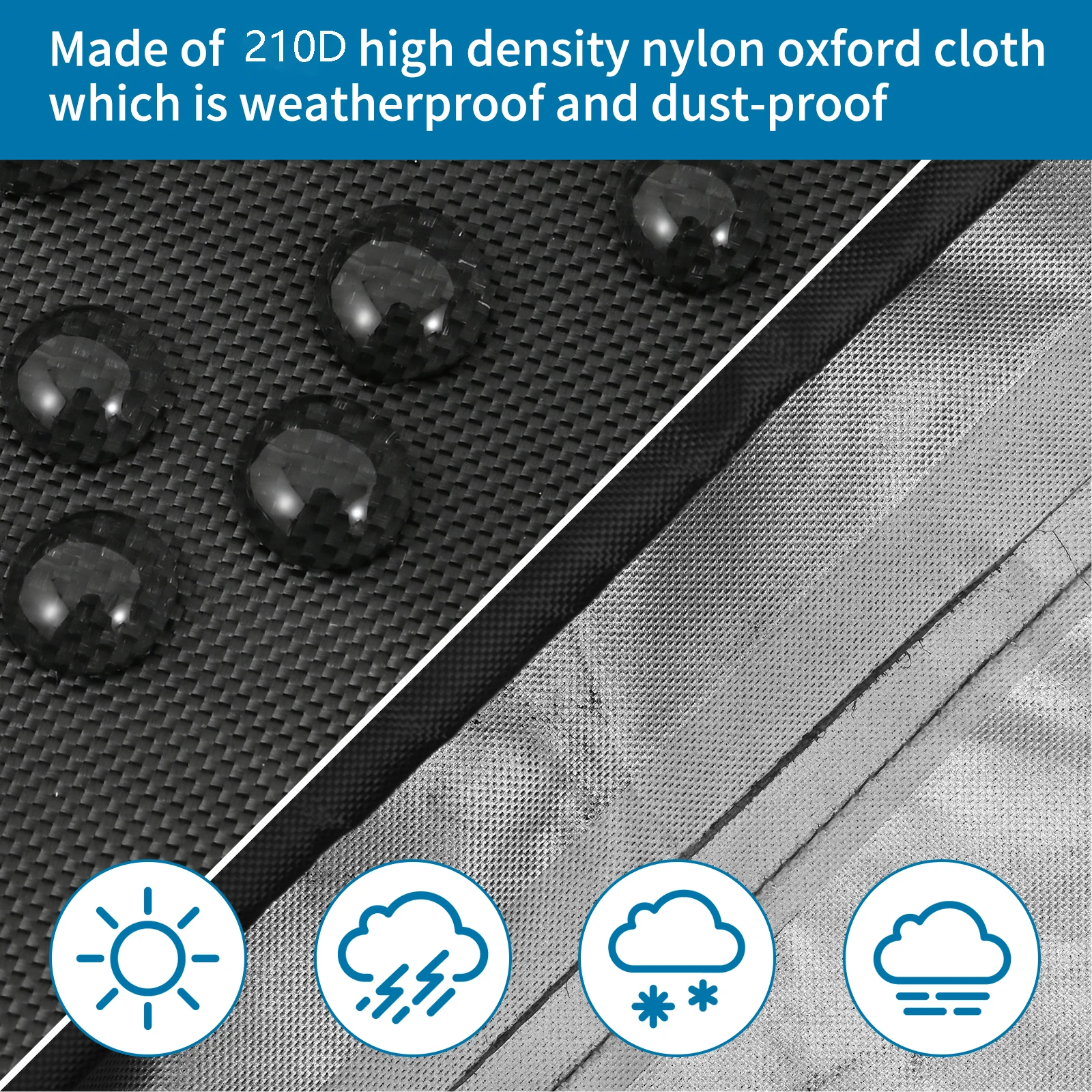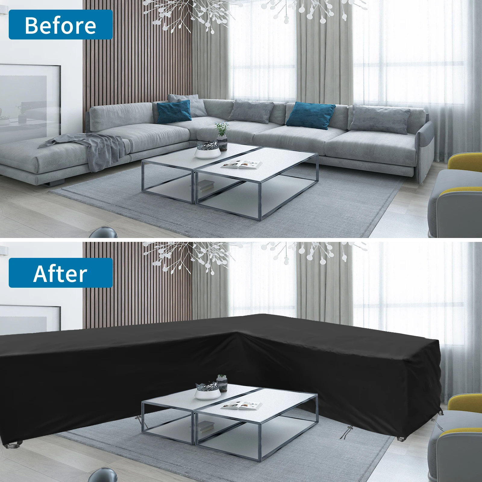 1. Waterproof patio part cover: Made of waterproof thick Oxford cloth with PVC coating on the back. Waterproof against wind, rain, frost, UV rays, dirt, dust or bird droppings, keeping your furniture safe, clean and dry.