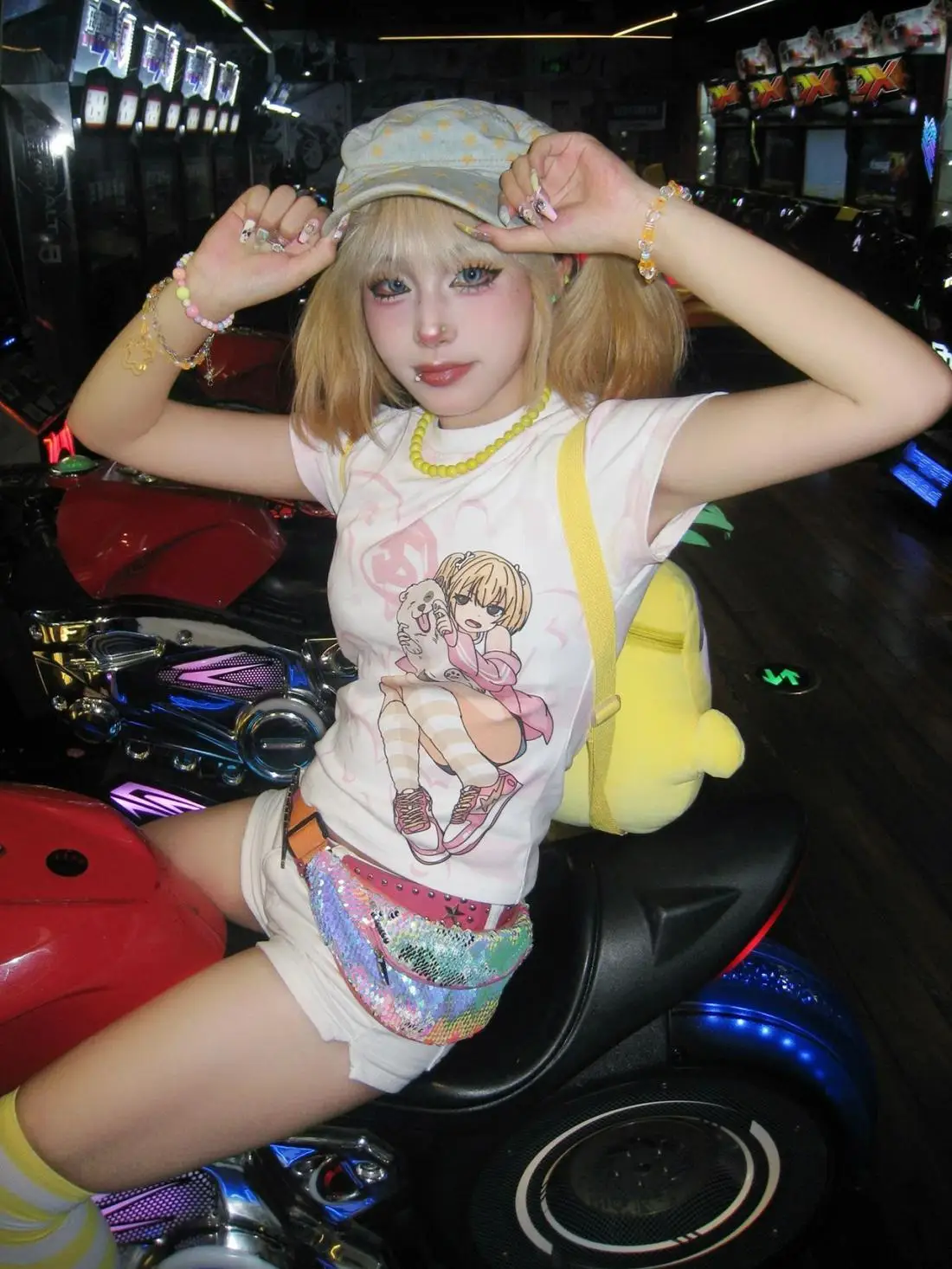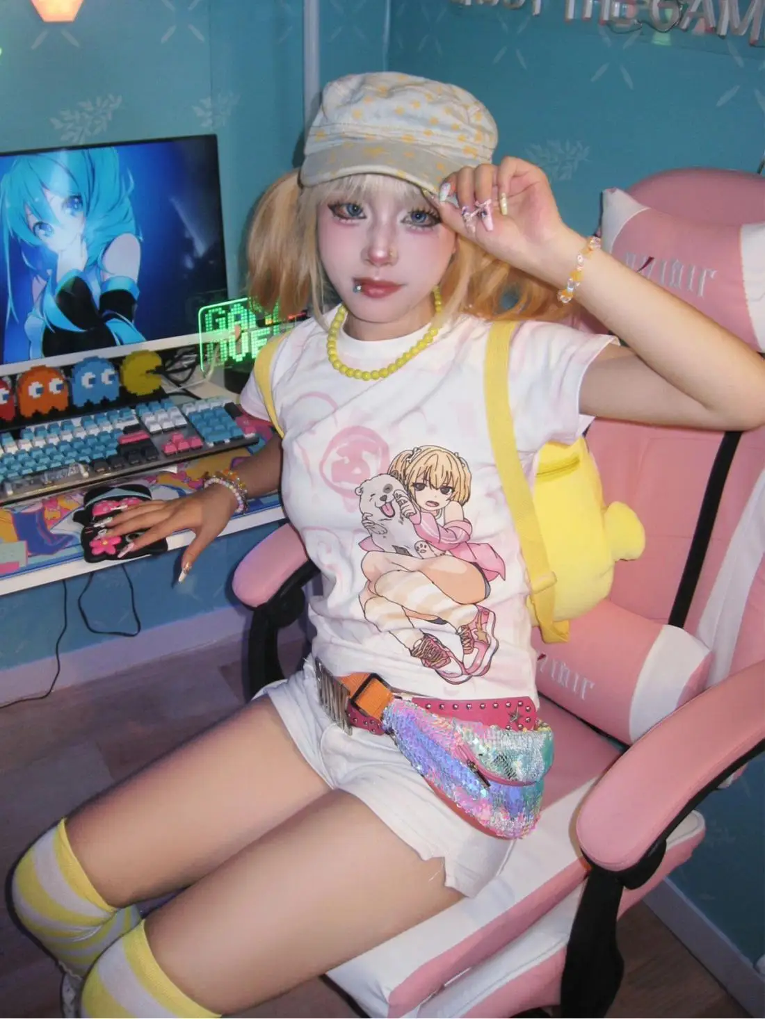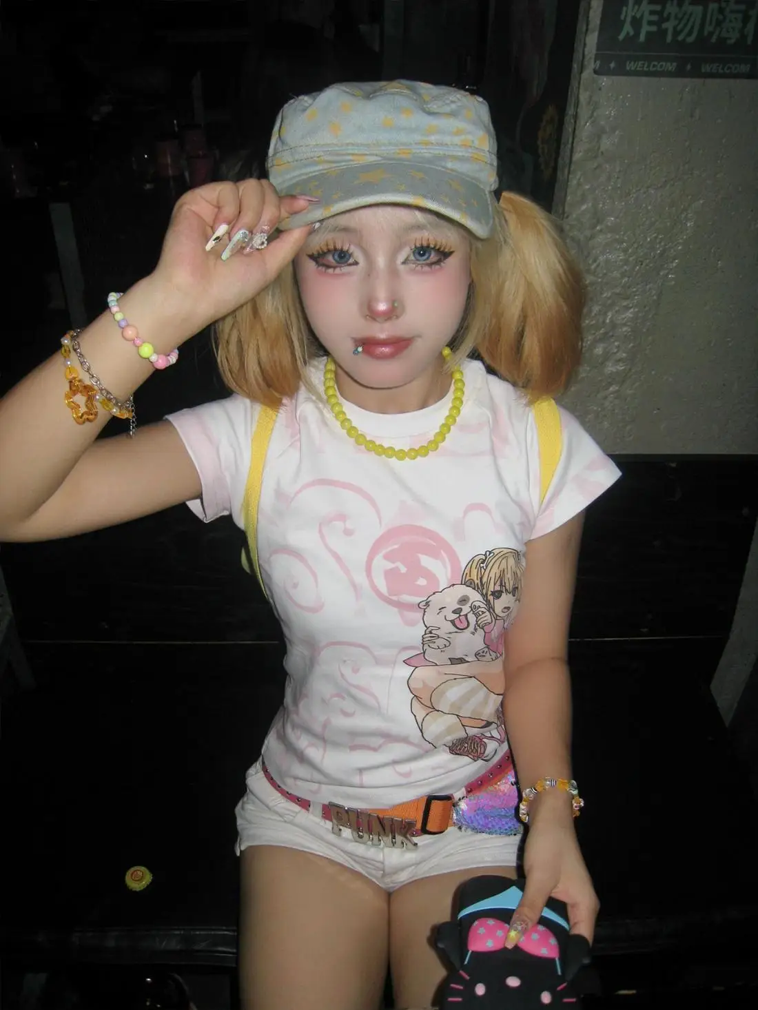 HOUZHOU Y2k Harajuku Streetwear T Shirts Women Japanese Fashion Kawaii Sweet Cartoon Print Slim Sexy Tees Tops Soft Gril Summer