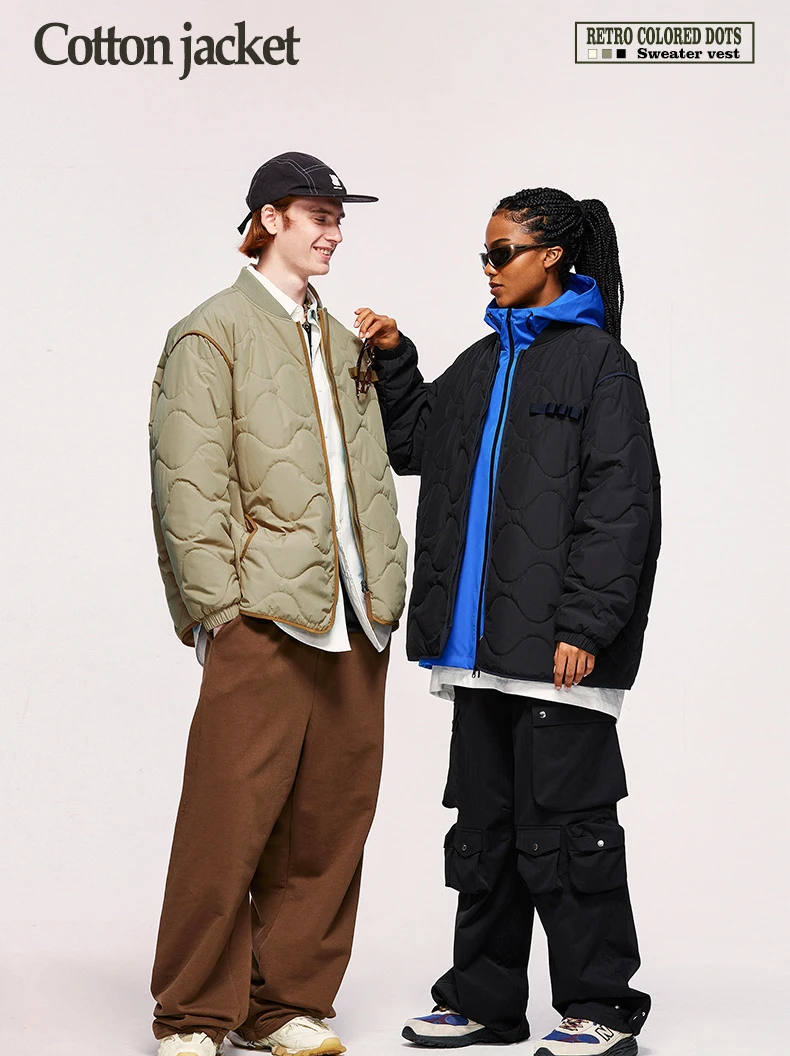 Japanese Padded Jackets Men Women Cotton Pure Solid Color Baseball Jacket Harajuku Casual Oversize Coat Winter Couple Streetwear