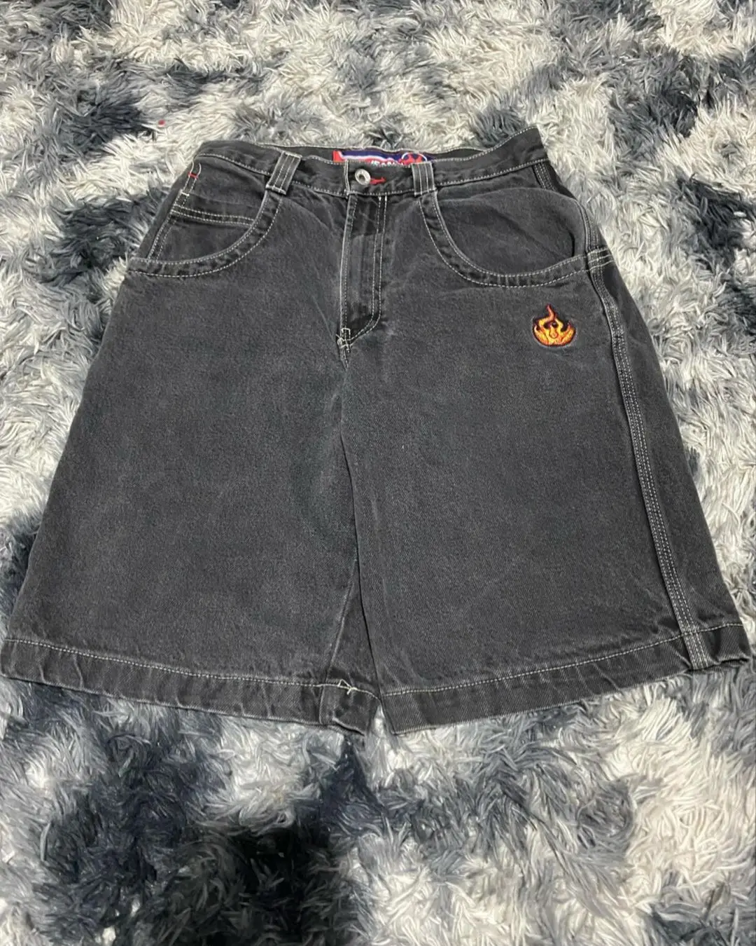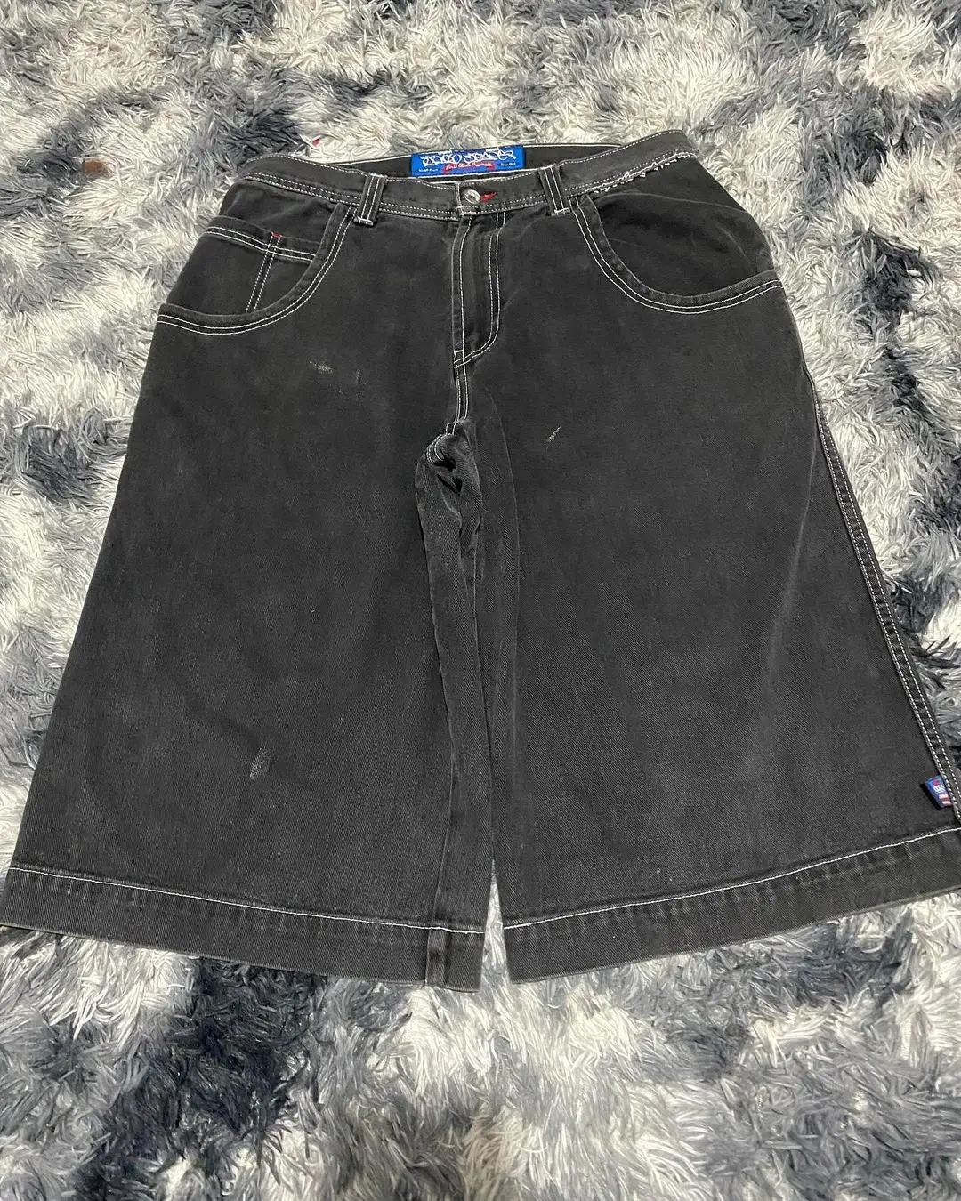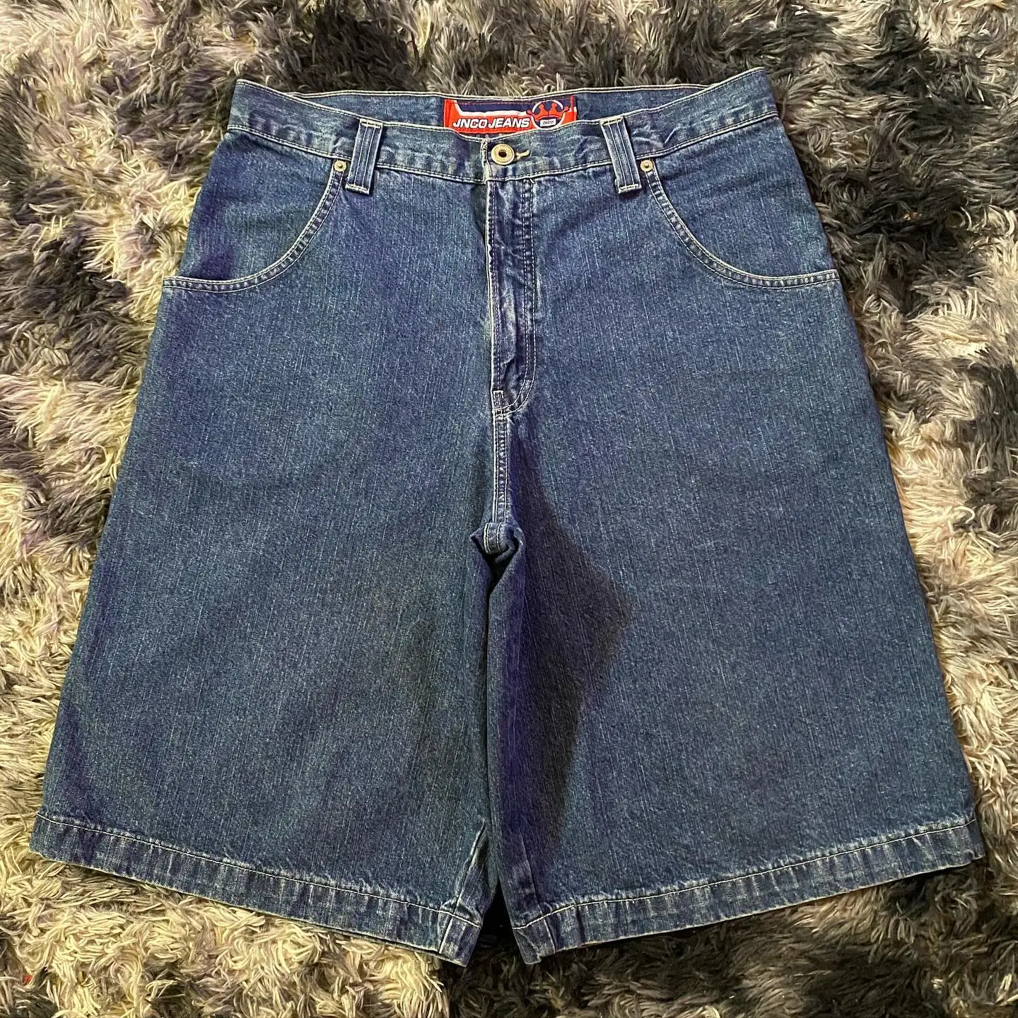 JNCO Shorts Y2K Pants Women Harajuku Hip Hop Retro Blue Denim Gym Baggy Jeans Shorts Summer New Mens Gothic Basketball ShortsSize Table