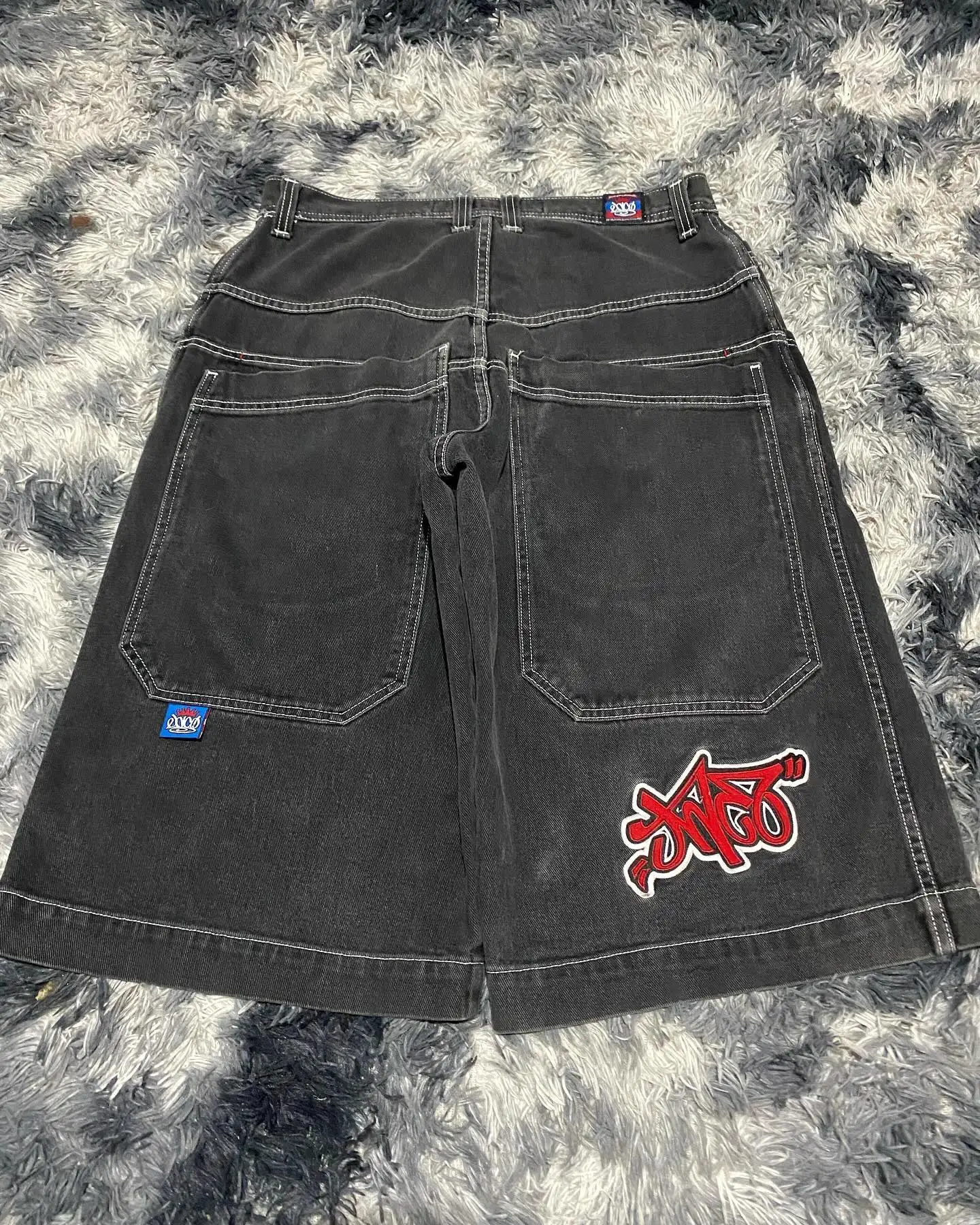 JNCO Shorts Y2K Pants Women Harajuku Hip Hop Retro Blue Denim Gym Baggy Jeans Shorts Summer New Mens Gothic Basketball Shorts