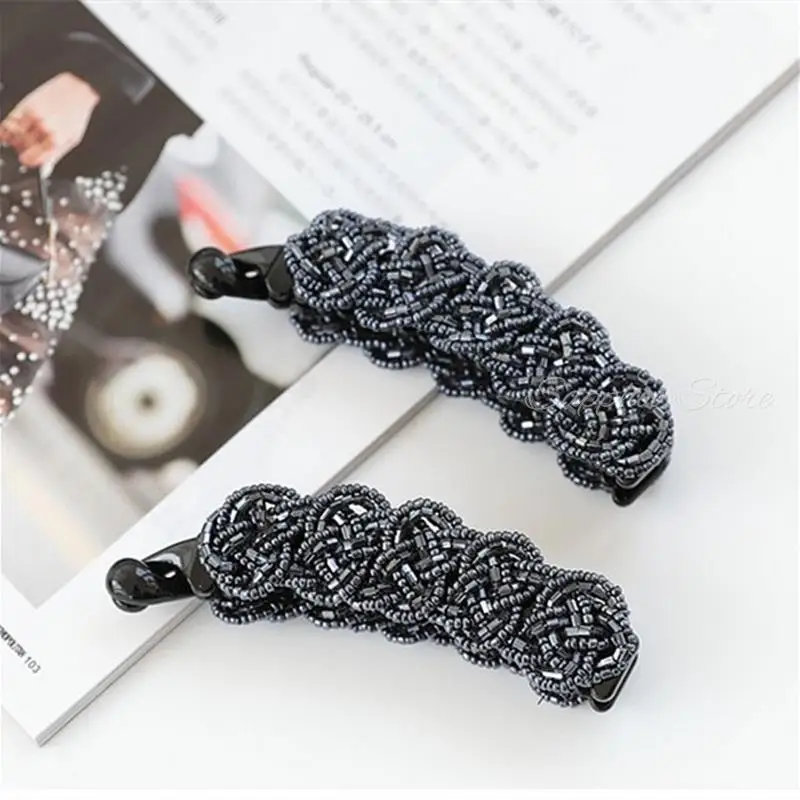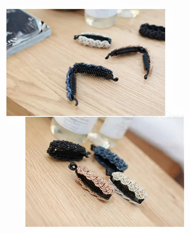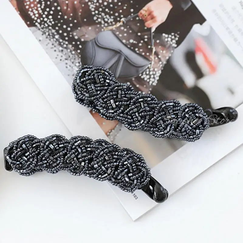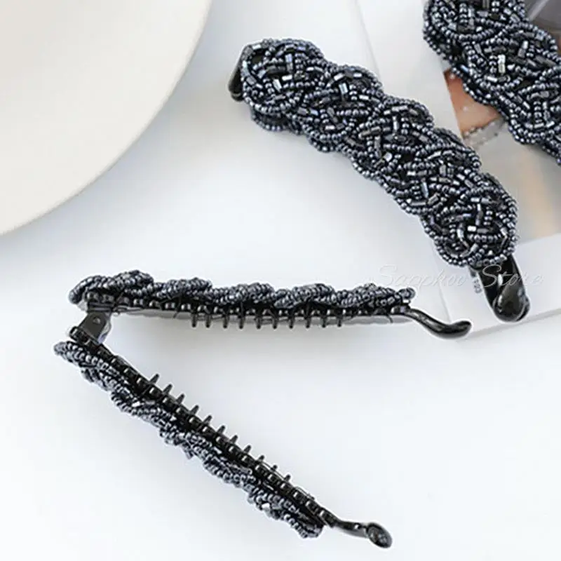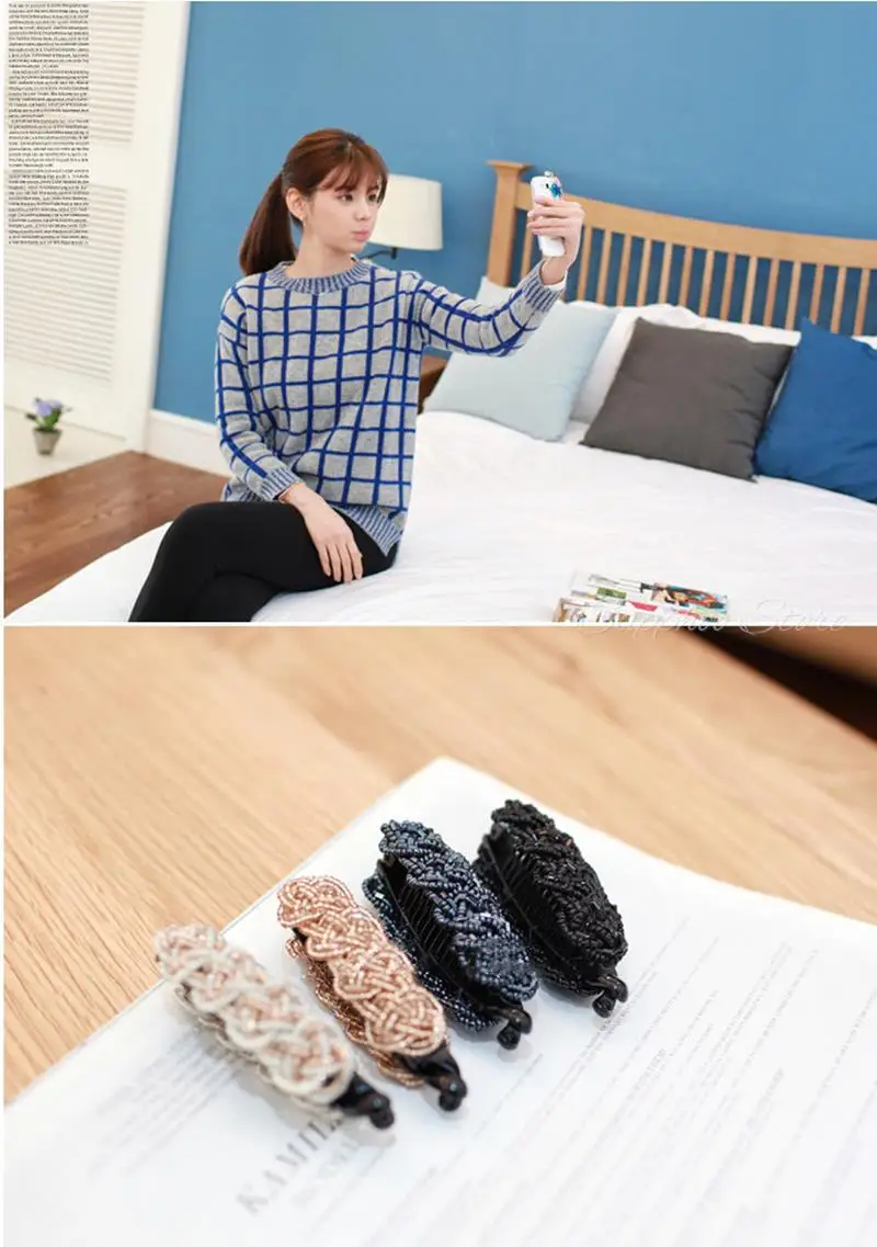 Korea Crystal Beads Edition Small Hairpin Banana Clip 8cm Vertical Clip Twist Clip Horsetail Clip Horsetail Buckle 4 Colors