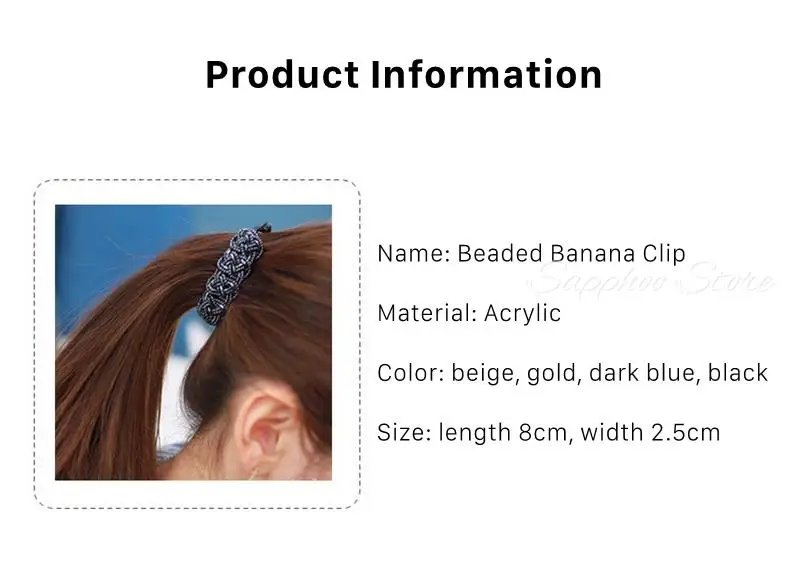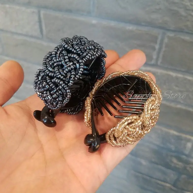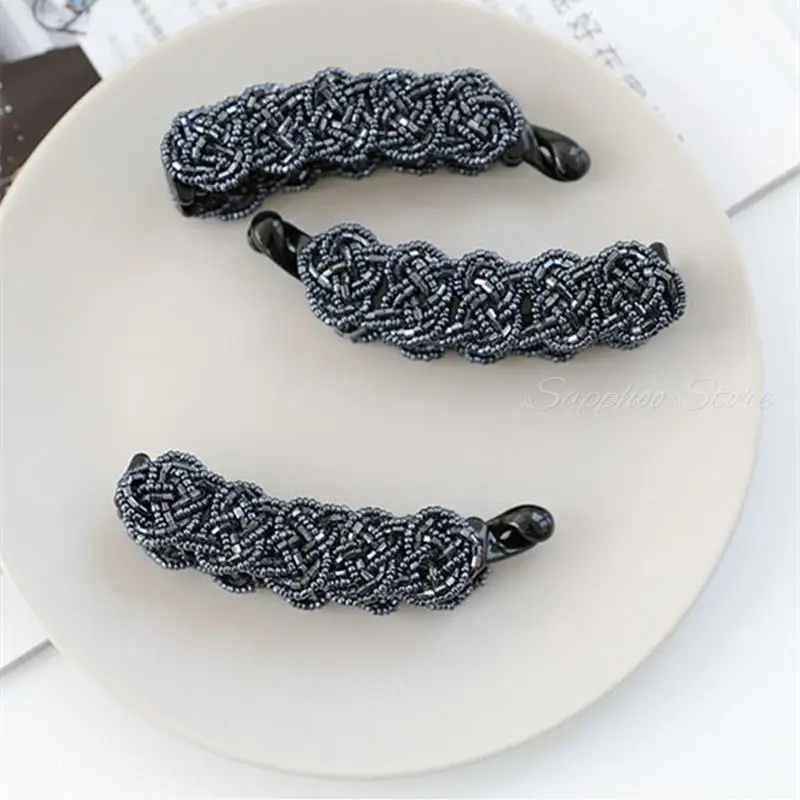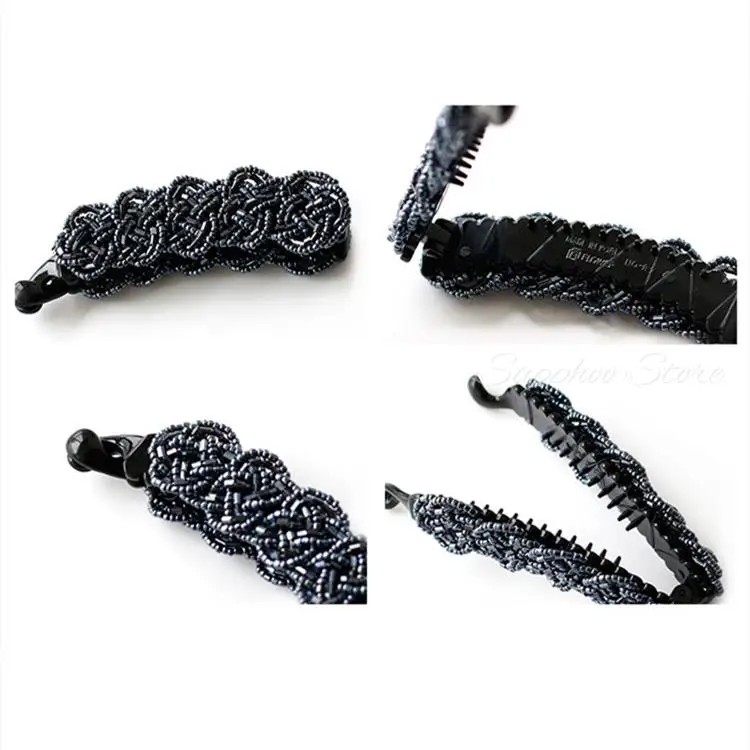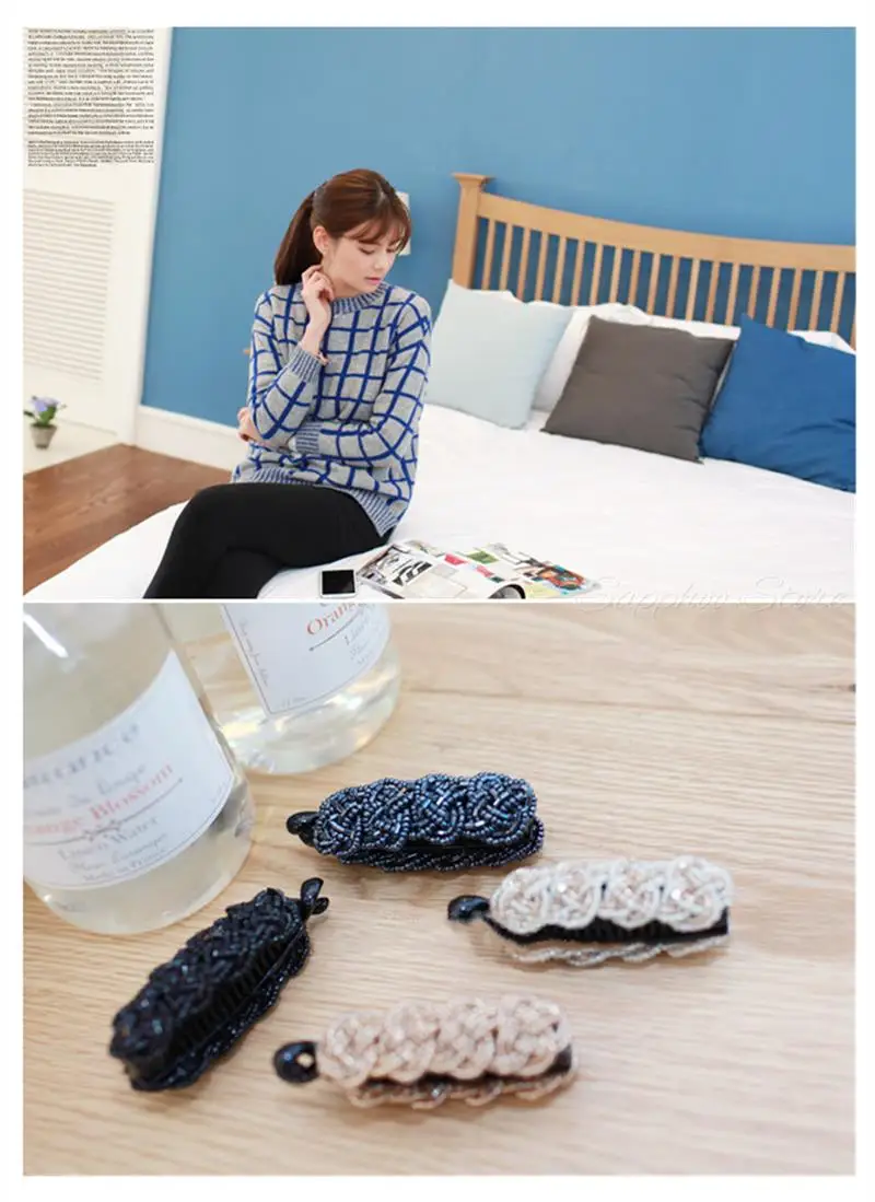 Korea Crystal Beads Edition Small Hairpin Banana Clip 8cm Vertical Clip Twist Clip Horsetail Clip Horsetail Buckle 4 Colors
