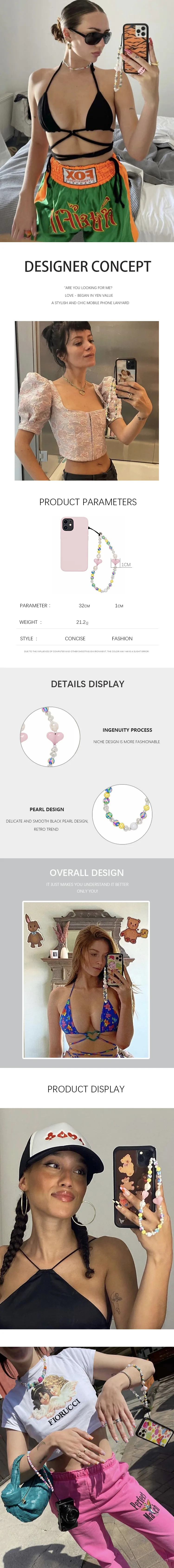 Kpop Heart Phone Charm Beads Straps Wholesale Korean Mobile Chain Jewelry Cord for Cell Phone Accessories Anti-lost Lanyard